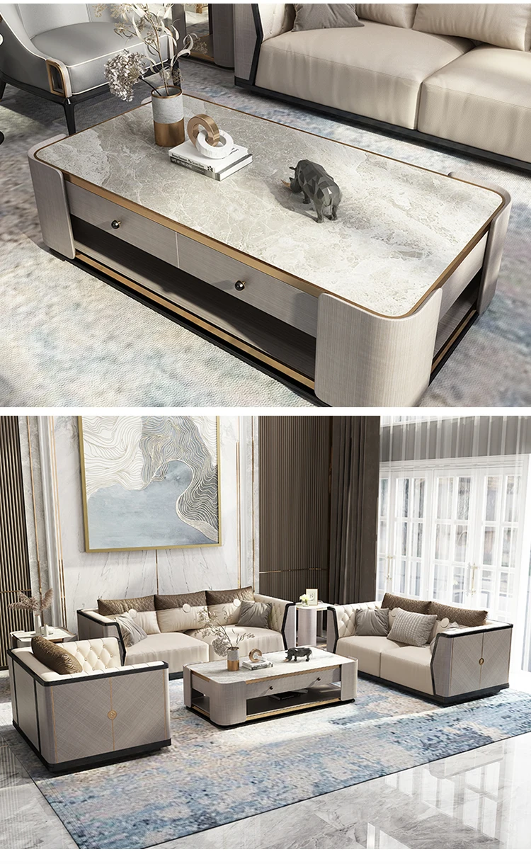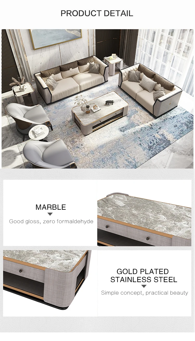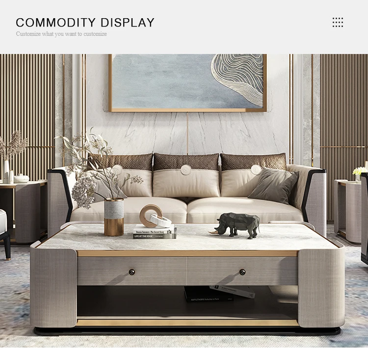 Modern Style Big Gray Marble Top Solid Wood Base Coffee Table For Living Room Table Living Room Marble Coffee Tables