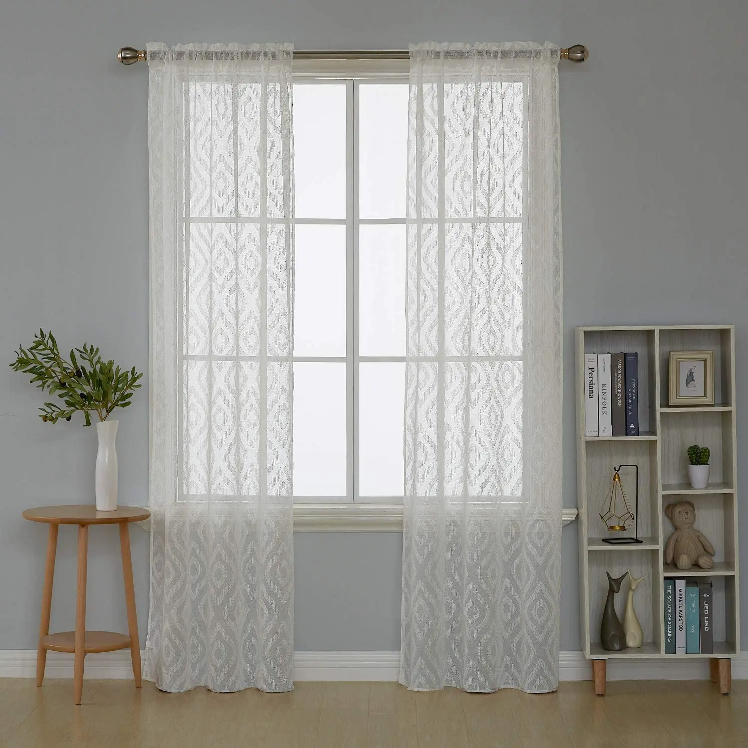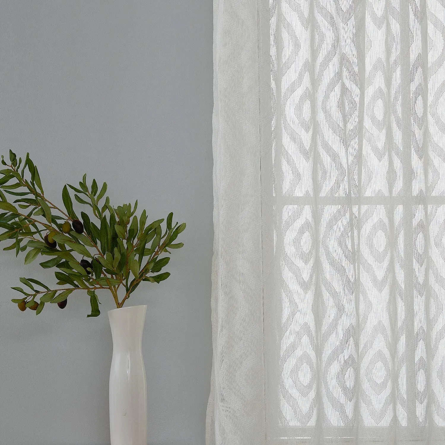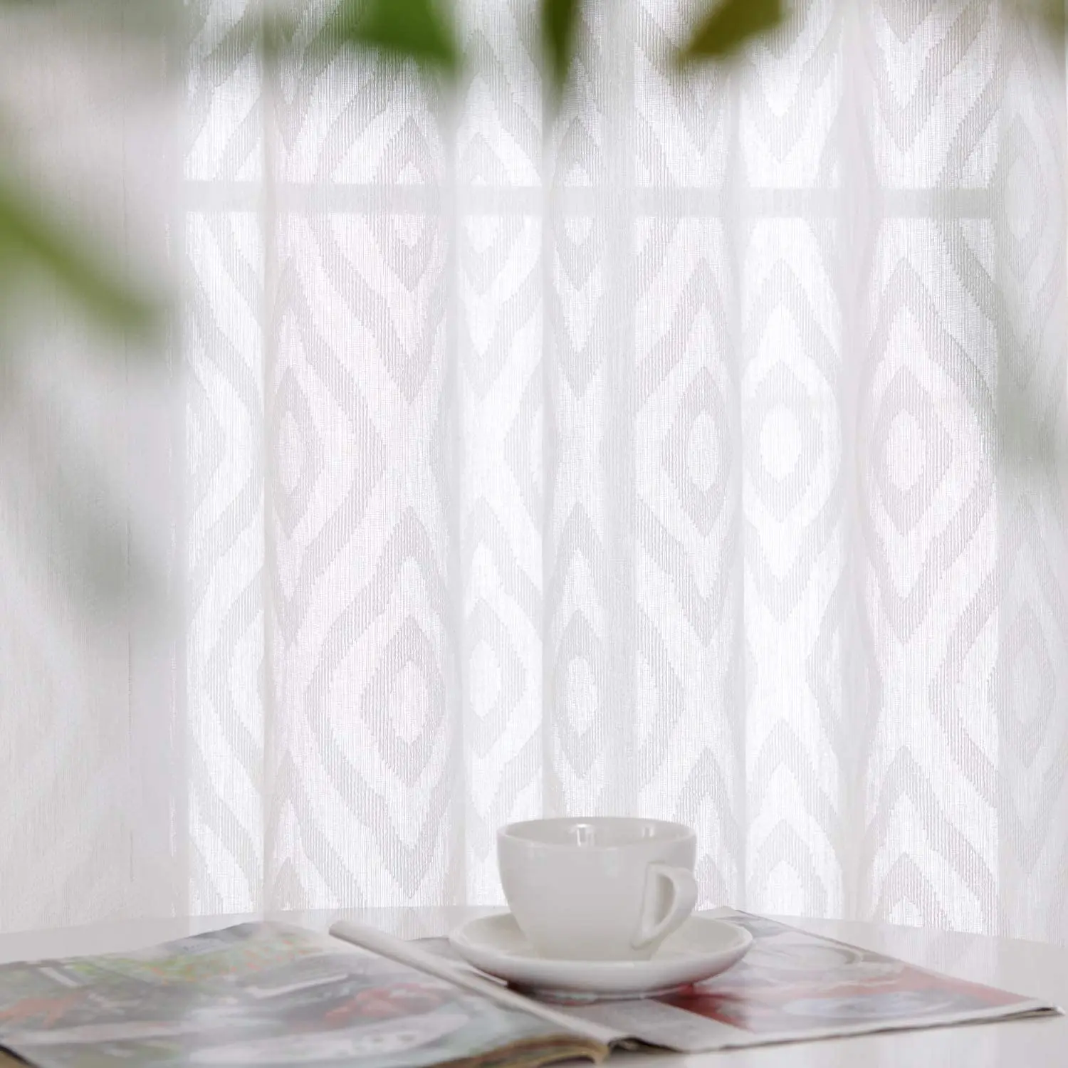 首页 门、窗、窗帘、标识标牌 窗帘及门帘 窗帘 Jacquard EMI Panels with Rhombic Pattern White Sheer Curtains for Living Room