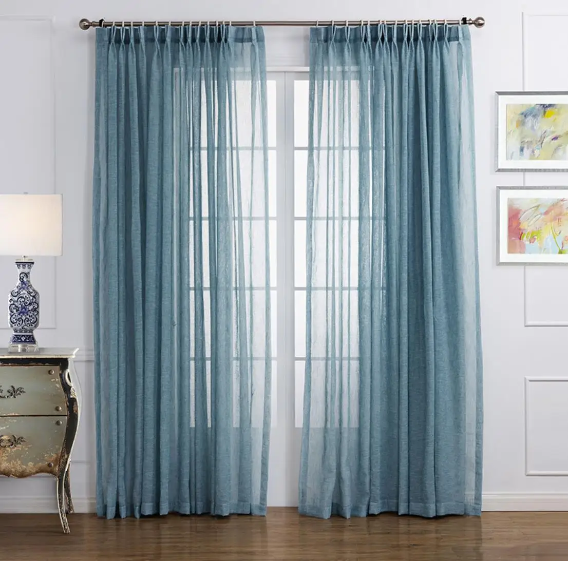 首页 门、窗、窗帘、标识标牌 窗帘及门帘 窗帘 Thick linen fabric blue curtains for european window curtains