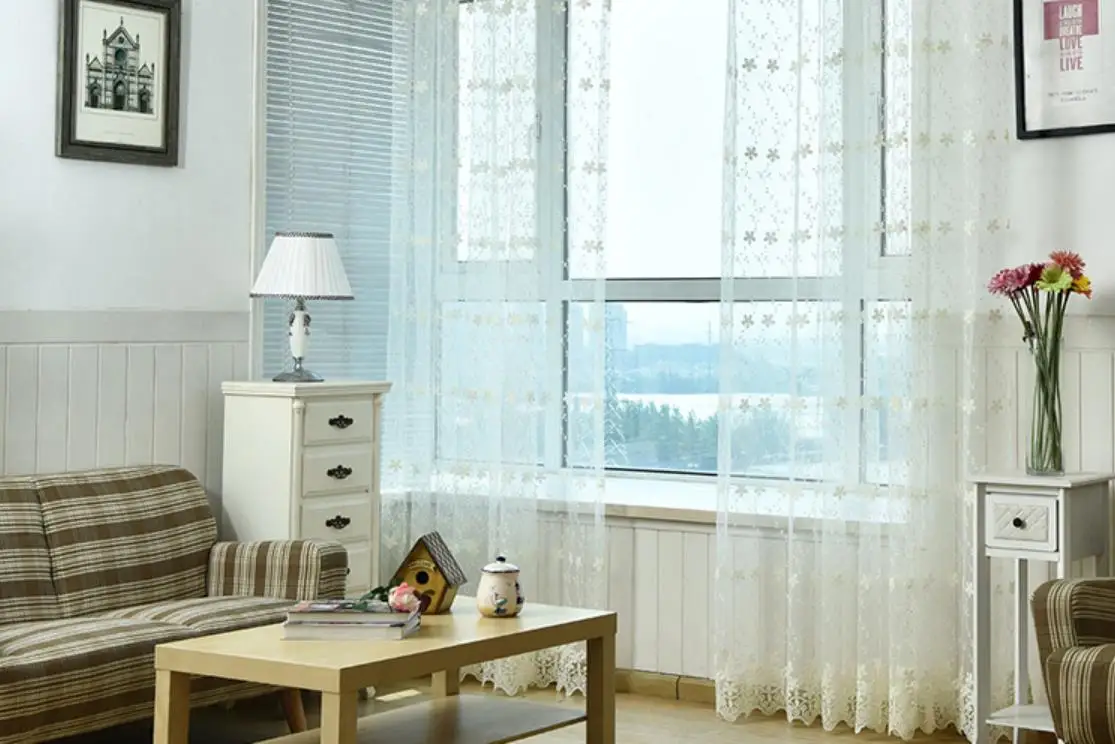Hanging yellow flower lace wedding curtains sheer curtain