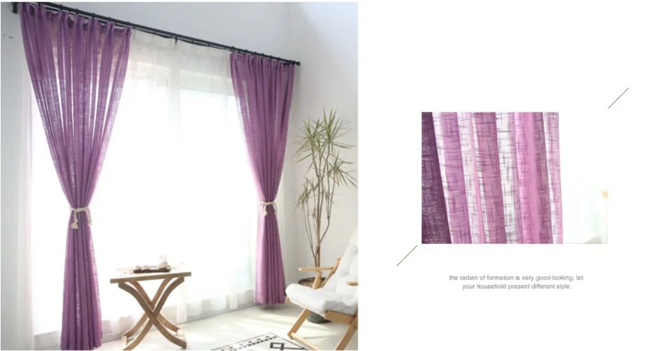 首页 门、窗、窗帘、标识标牌 窗帘及门帘 窗帘 Purple color Cross linen look sheer curtains Korean style solid sheer curtains for living room