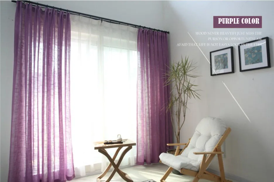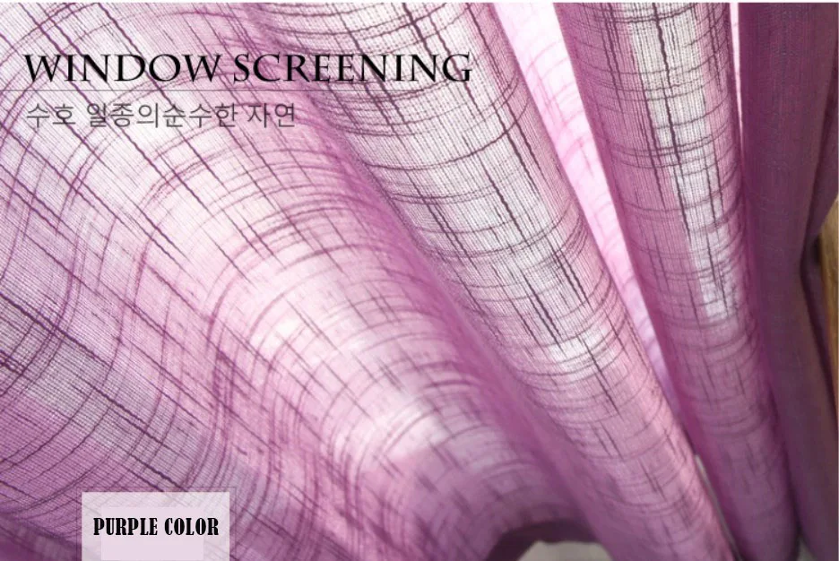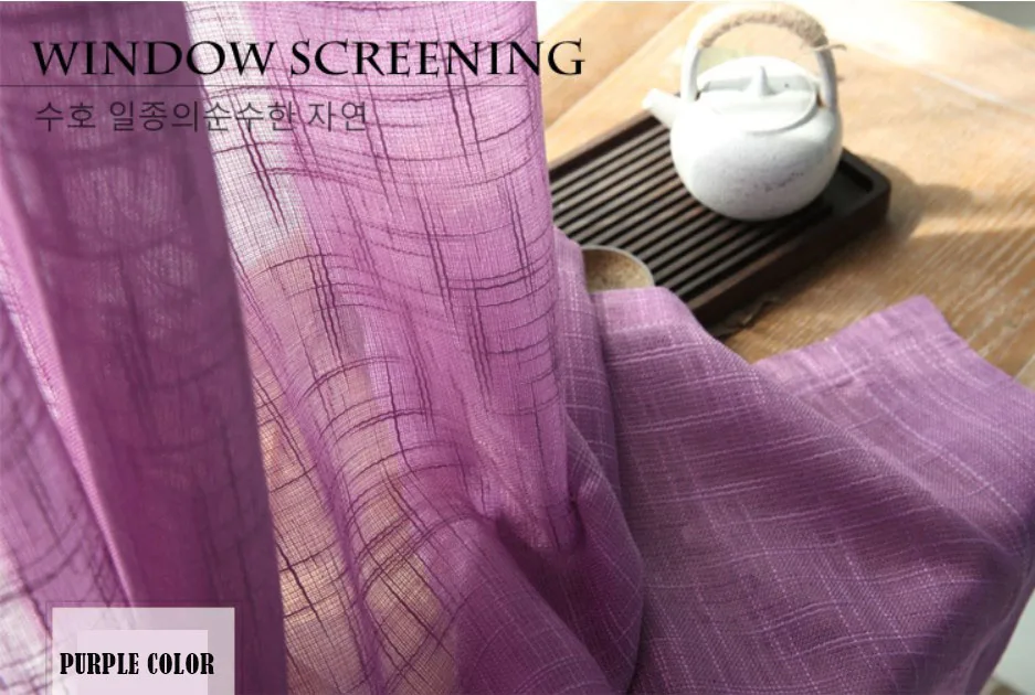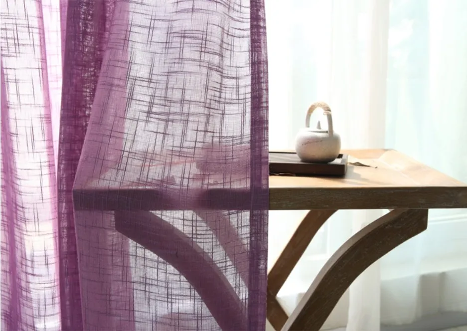 Purple color Cross linen look sheer curtains Korean style solid sheer curtains for living room