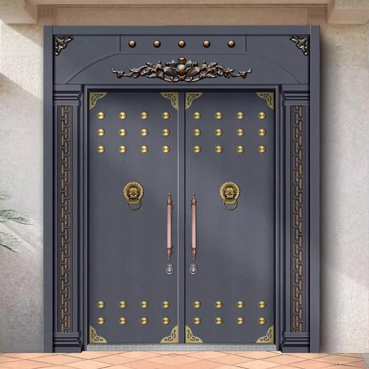 首页 门、窗、窗帘、标识标牌 入户门 钢制门 Exterior home front double security steel zinc alloy door design for villa