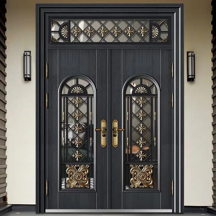 首页 门、窗、窗帘、标识标牌 入户门 钢制门 YZH residential entrance main double steel glass door with grill designs