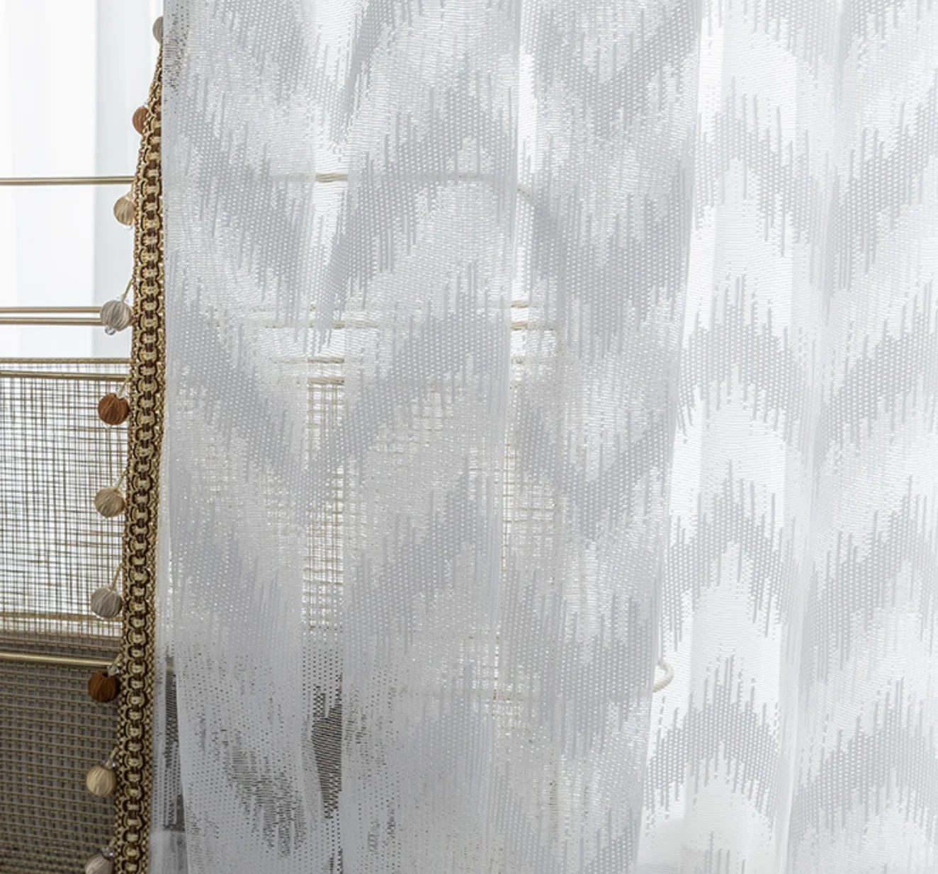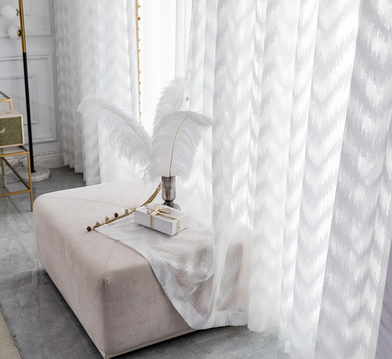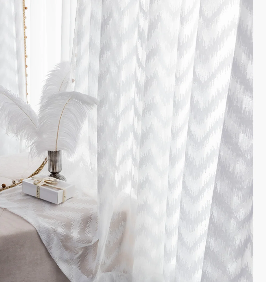 首页 门、窗、窗帘、标识标牌 窗帘及门帘 窗帘 Quietly elegant white sheer curtain fast-selling curtain blinds for window