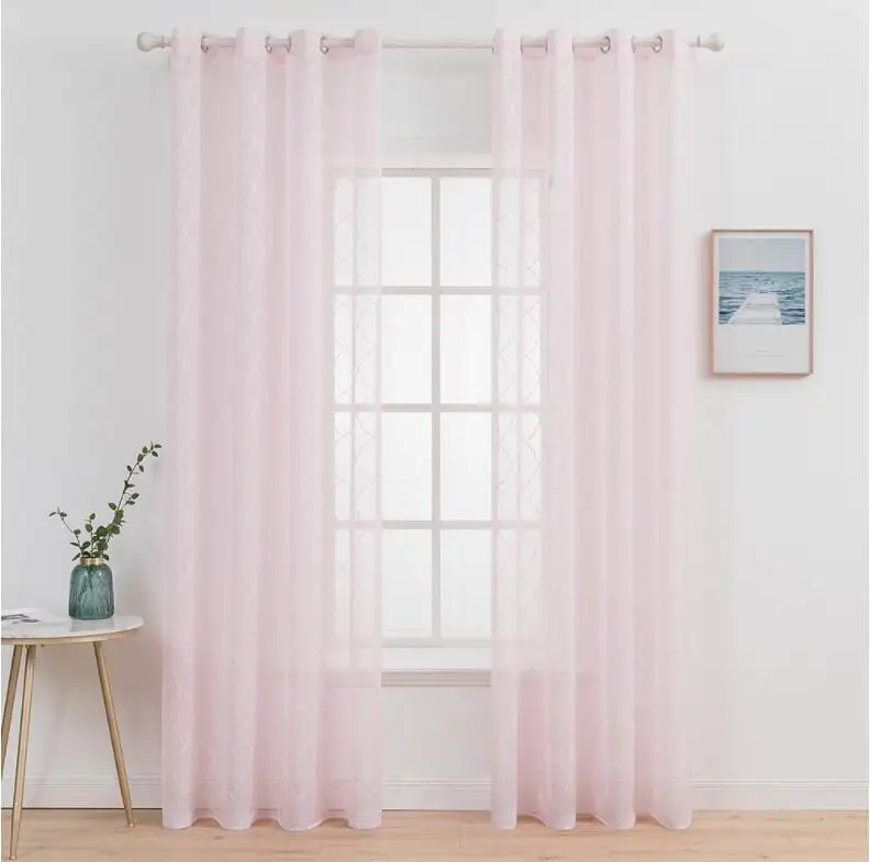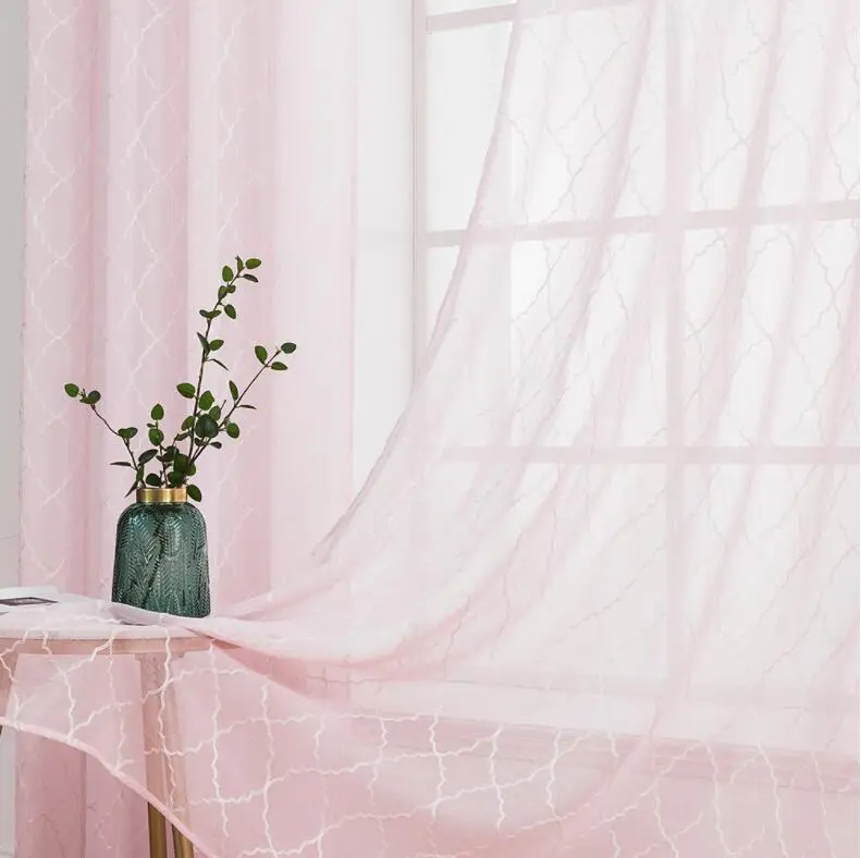 Pink color Classic Moroccan embroidered sheer curtain Popular embroidery sheer curtain hot selling Amazon