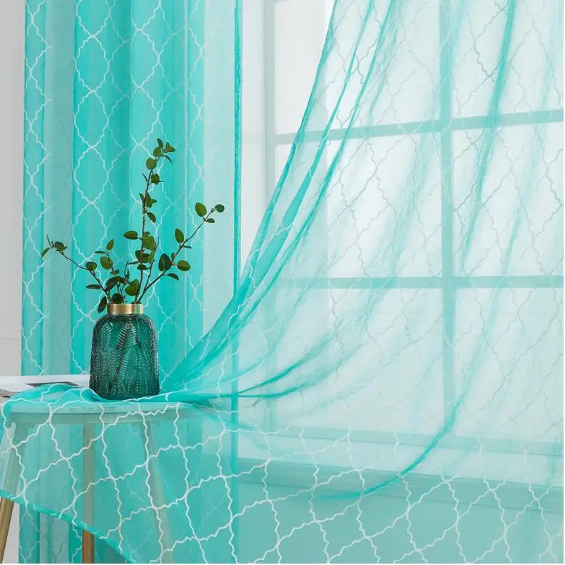 Blue color Classic Moroccan embroidered sheer curtain Popular embroidery sheer curtain hot selling Amazon