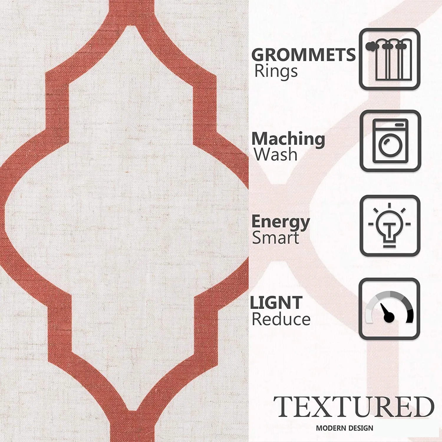 首页 门、窗、窗帘、标识标牌 窗帘及门帘 窗帘 Red on Beige Moroccan Tile Print Curtains for Living Room Quatrefoil Flax Linen Blend Textured Geometry Lattice Grommets on top