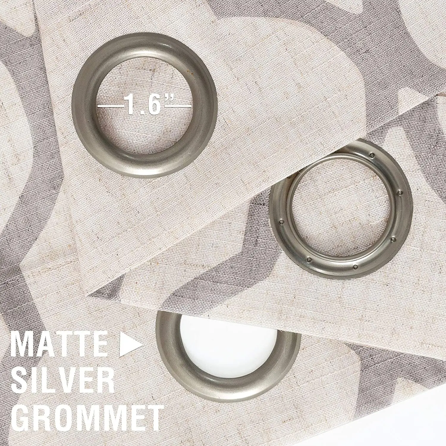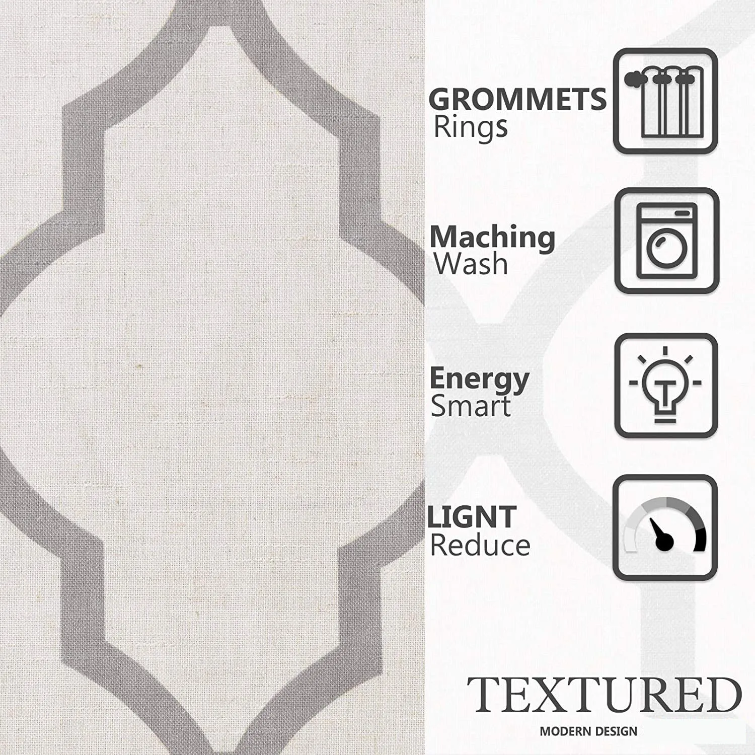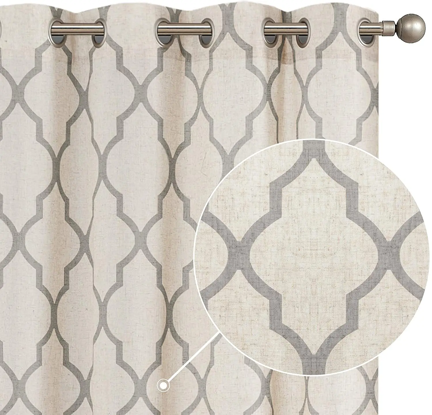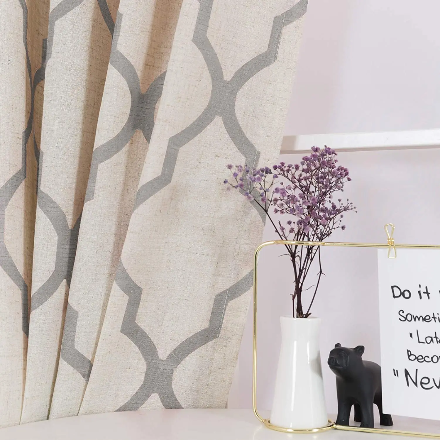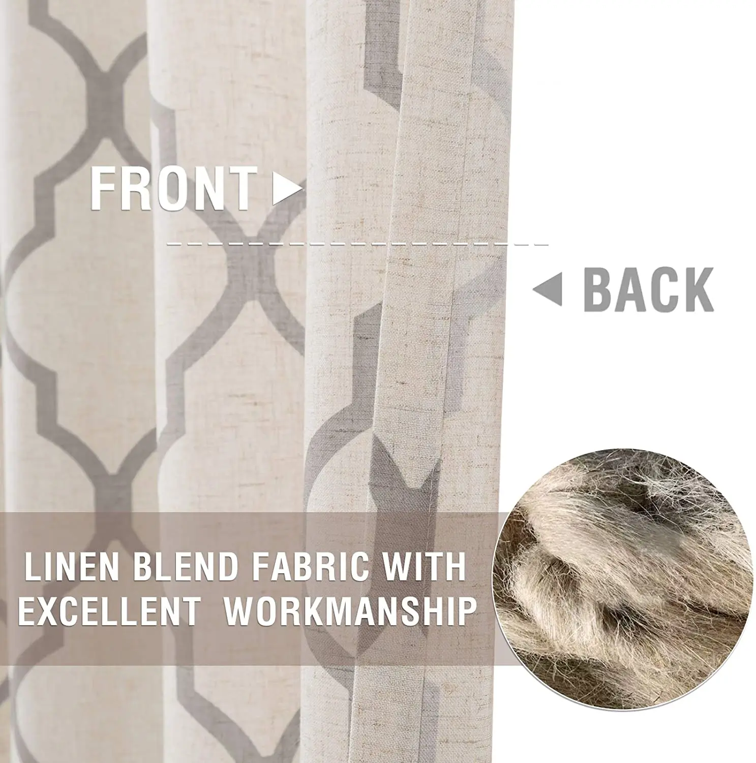 Moroccan Tile Print Curtains for Living Room Quatrefoil Flax Linen Blend Textured Geometry Lattice Grommet Window curtains