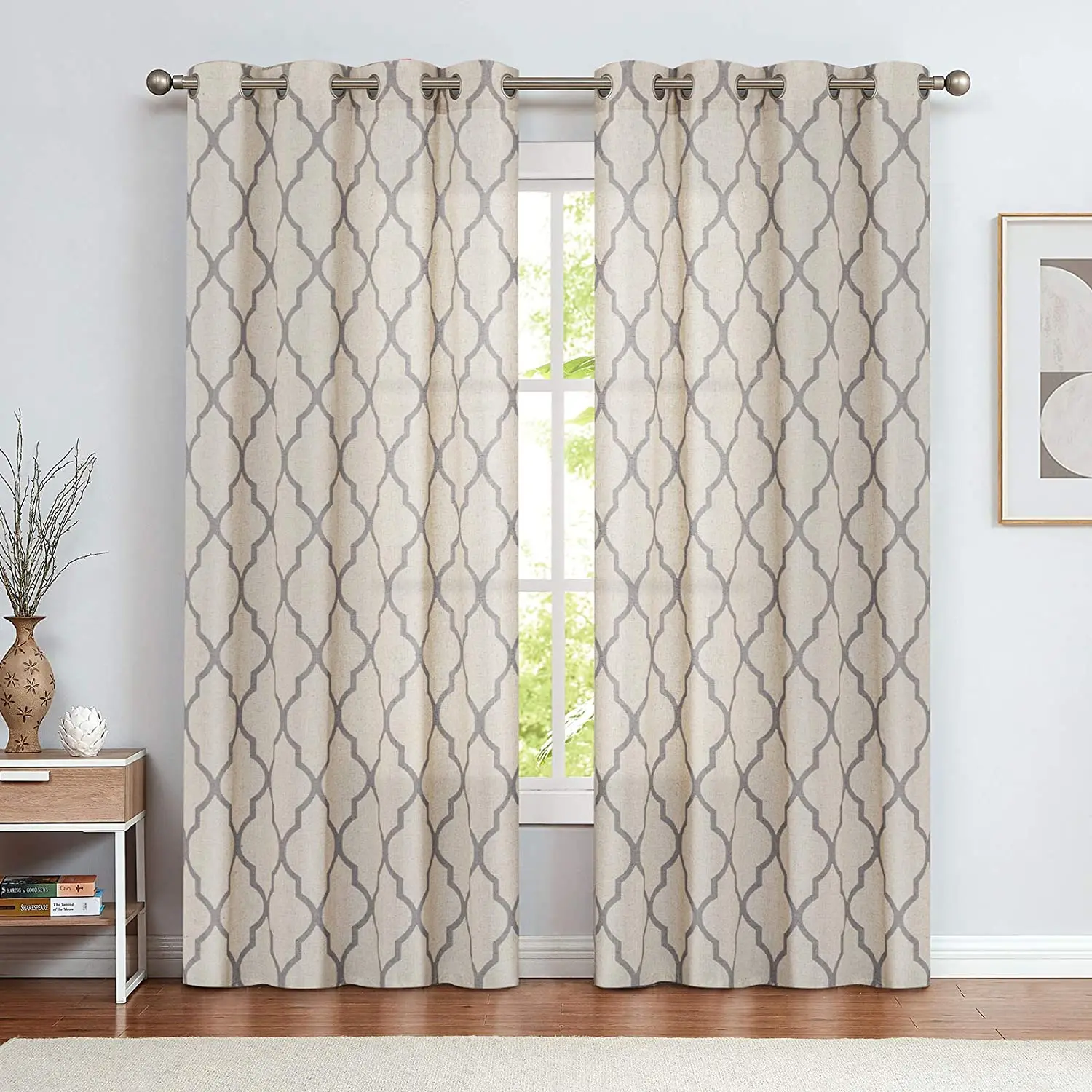 首页 门、窗、窗帘、标识标牌 窗帘及门帘 窗帘 Moroccan Tile Print Curtains for Living Room Quatrefoil Flax Linen Blend Textured Geometry Lattice Grommet Window curtains