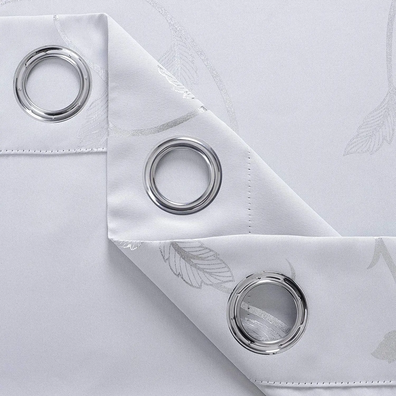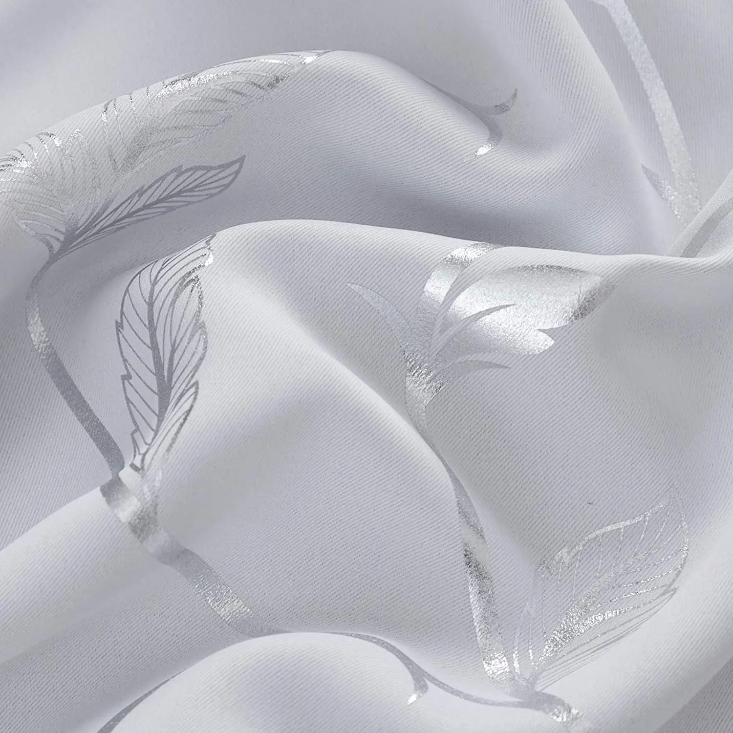 首页 门、窗、窗帘、标识标牌 窗帘及门帘 窗帘 Greyish White Blackout Curtains with Shinny Silver Vine Print Thermal Insulated Room Darkening Curtains for Bedroom