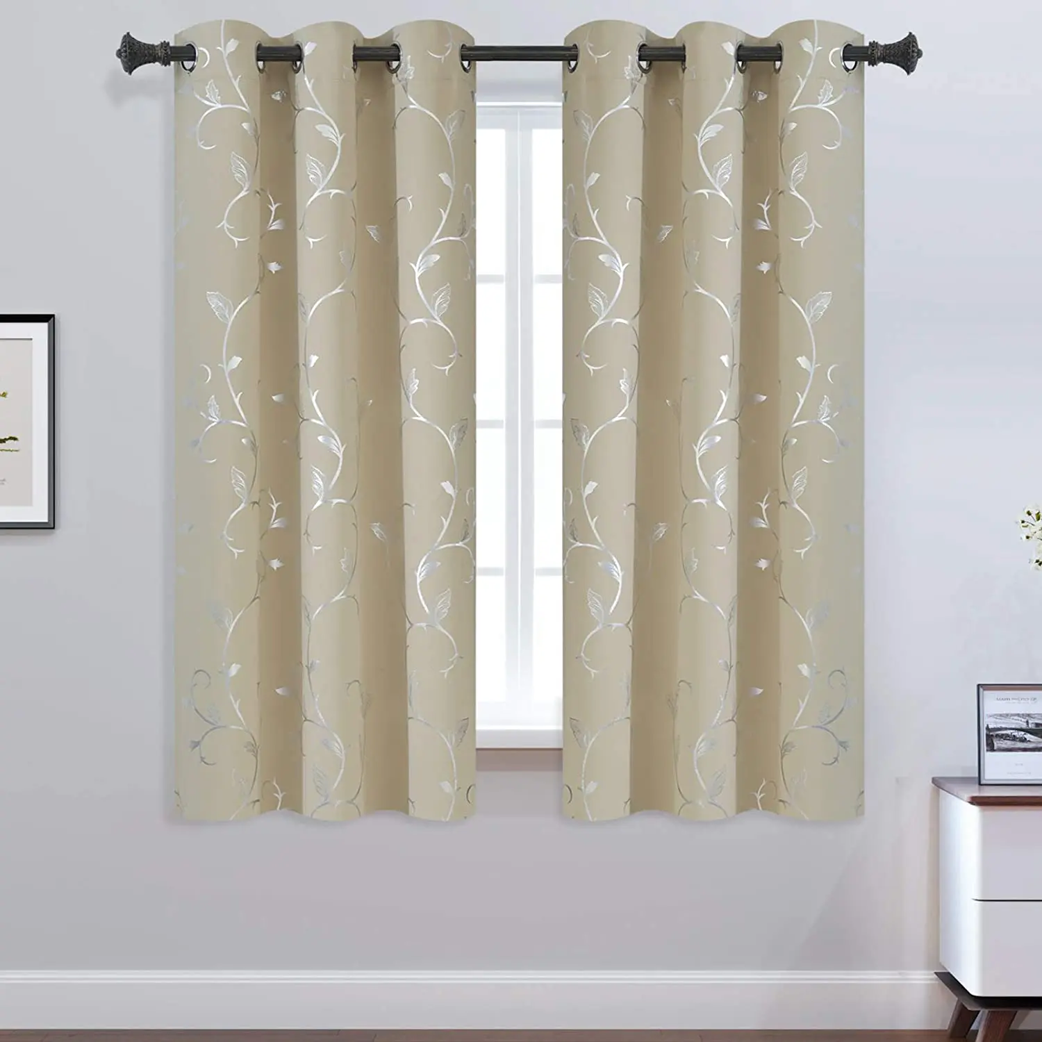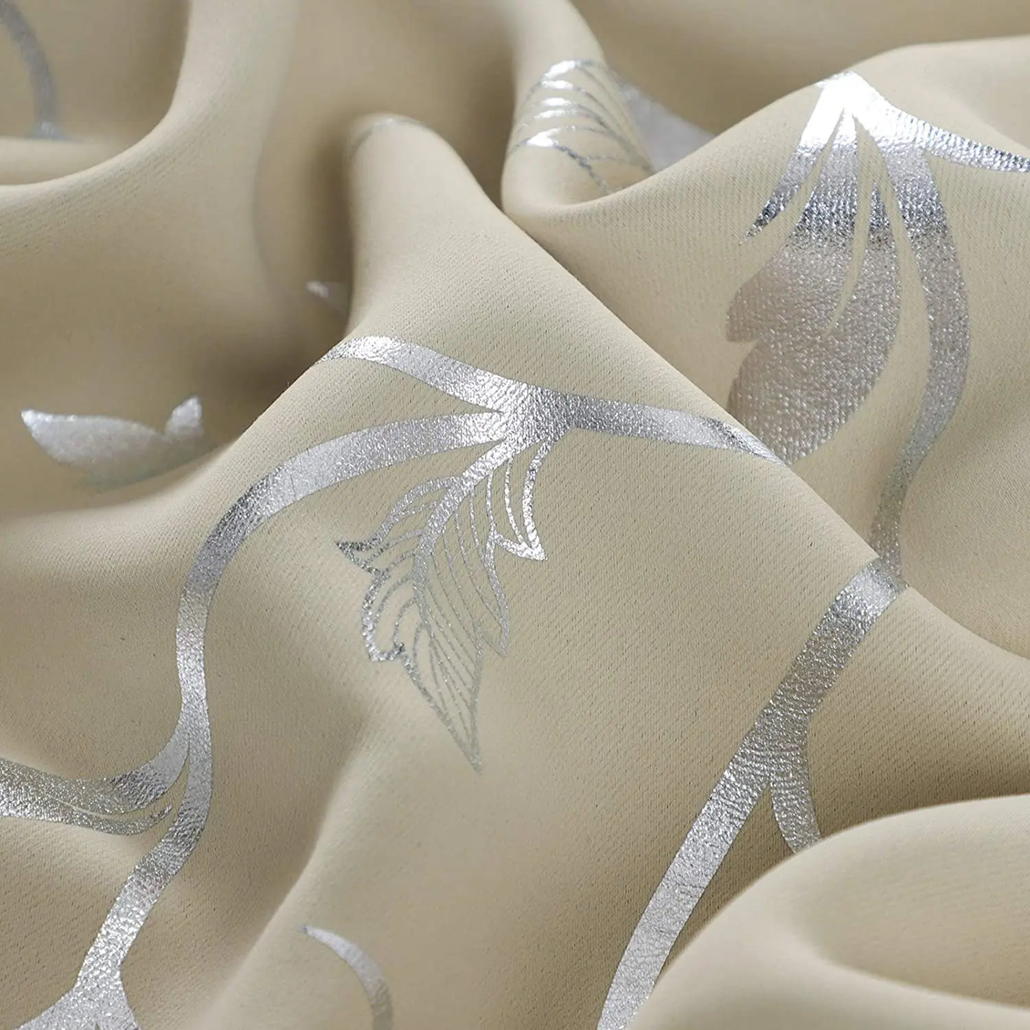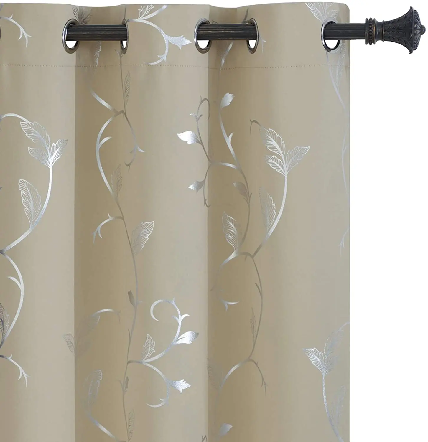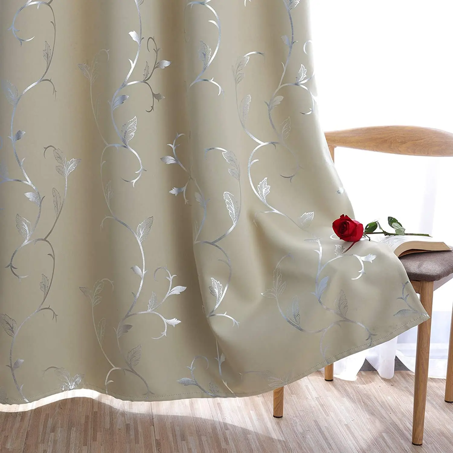 首页 门、窗、窗帘、标识标牌 窗帘及门帘 窗帘 Flower Print Blackout Curtains Thermal Insulated Window Curtains Silver Elegant Vine Pattern for Baby Room Beige