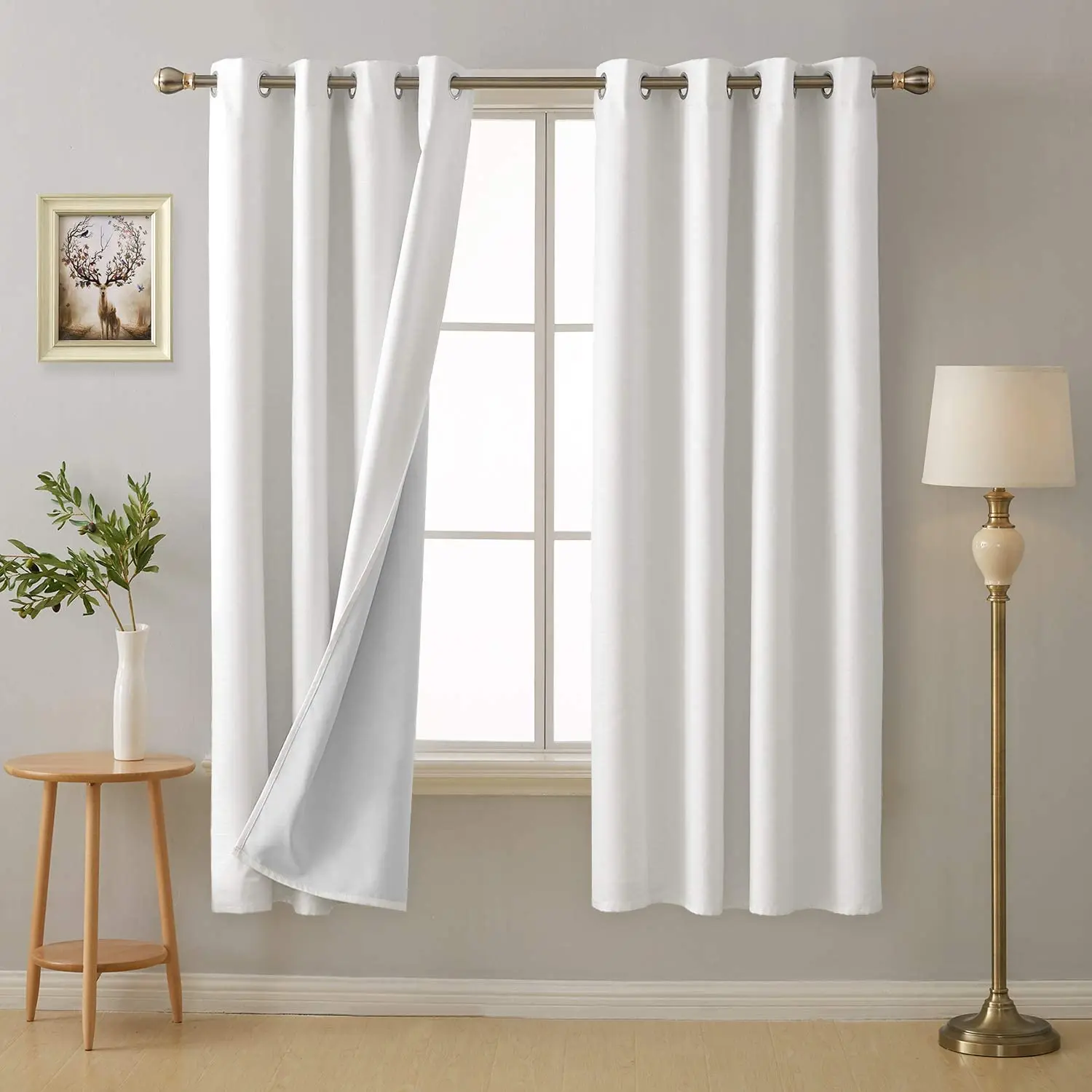 首页 门、窗、窗帘、标识标牌 窗帘及门帘 窗帘 White Blackout Curtains with Grommet Thermal Insulated Faux Linen Blackout Curtains for Girls Room