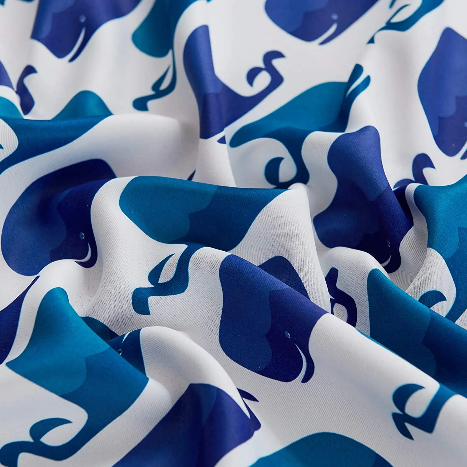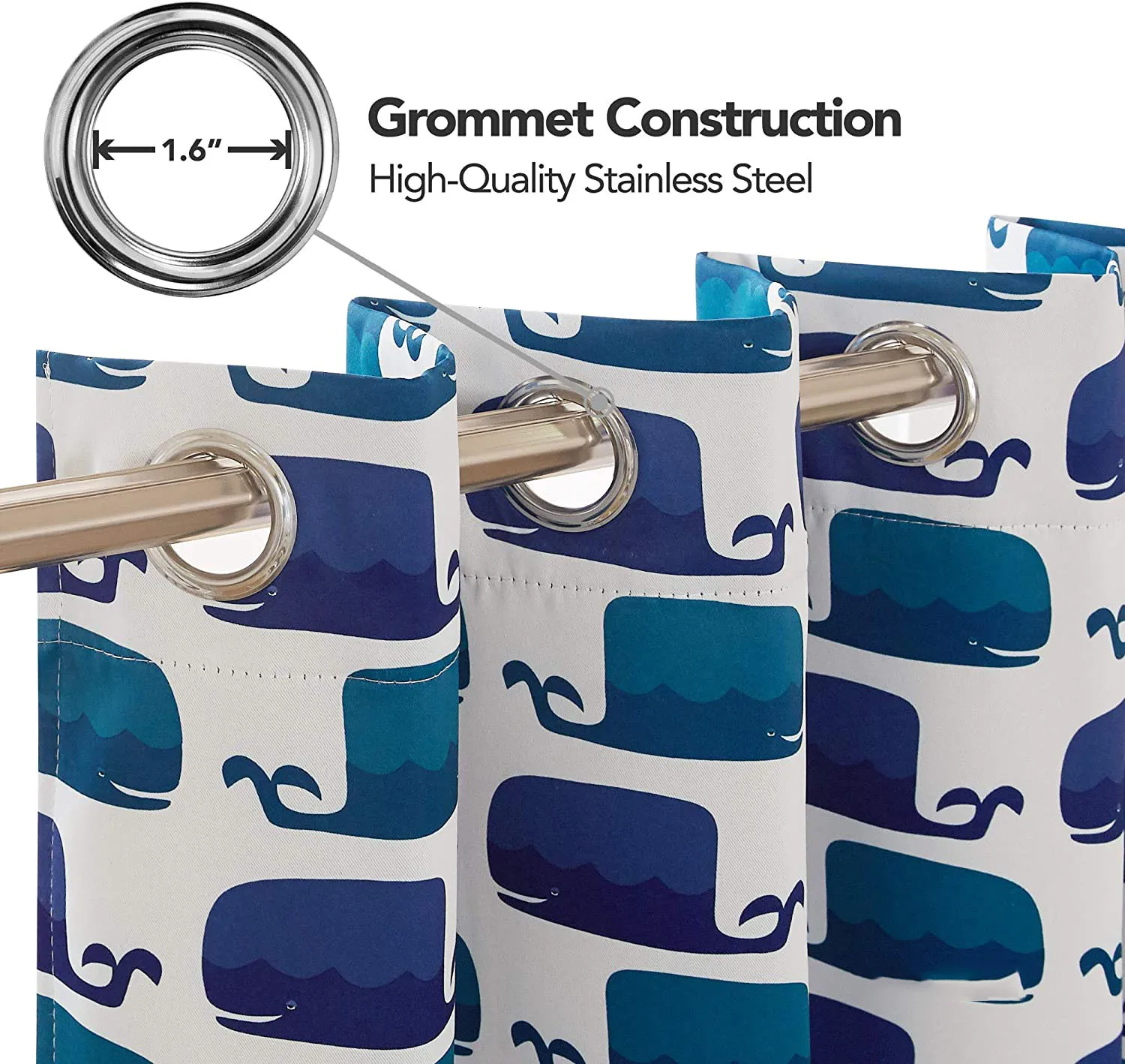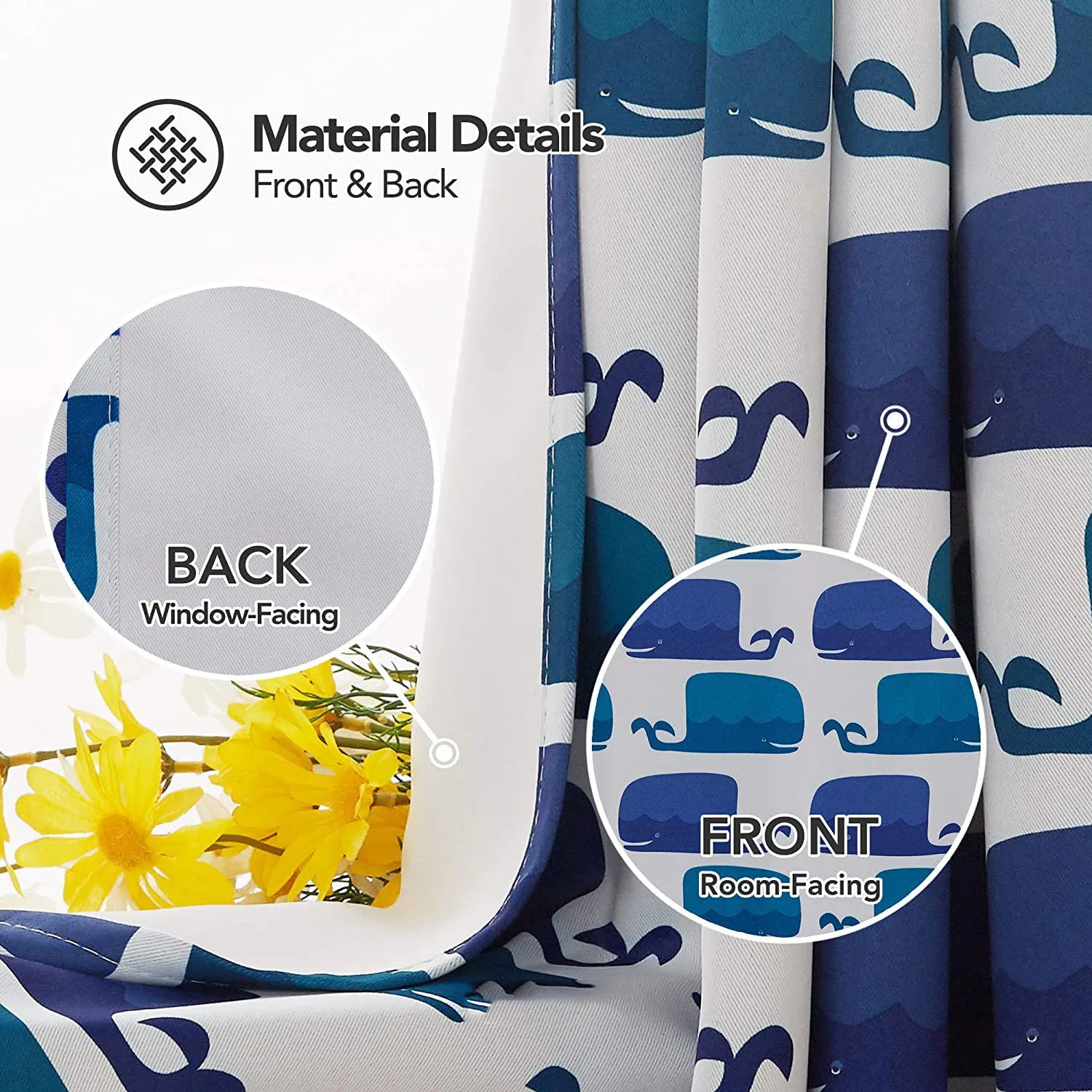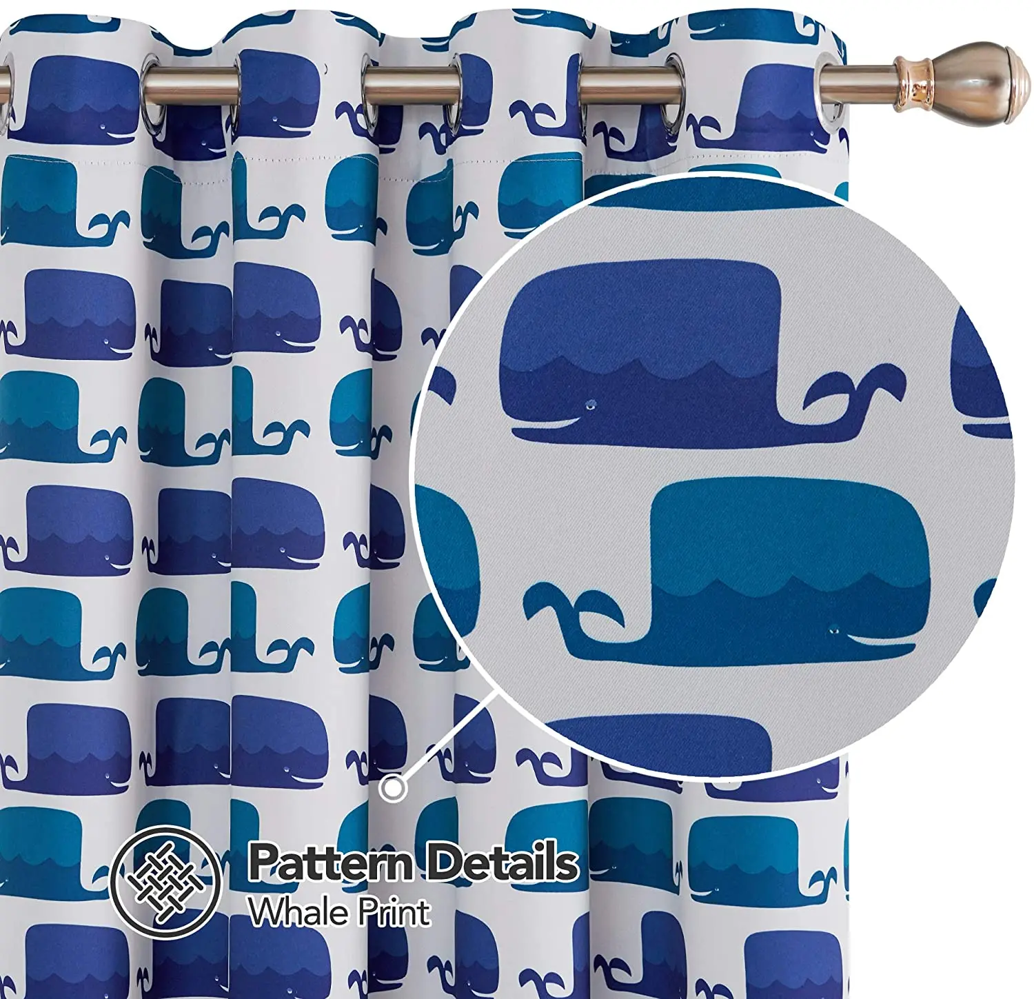 Thermal Insulated Blackout Curtains Whale Print Room Darkening Window Drapes with Grommet for Toddler Room