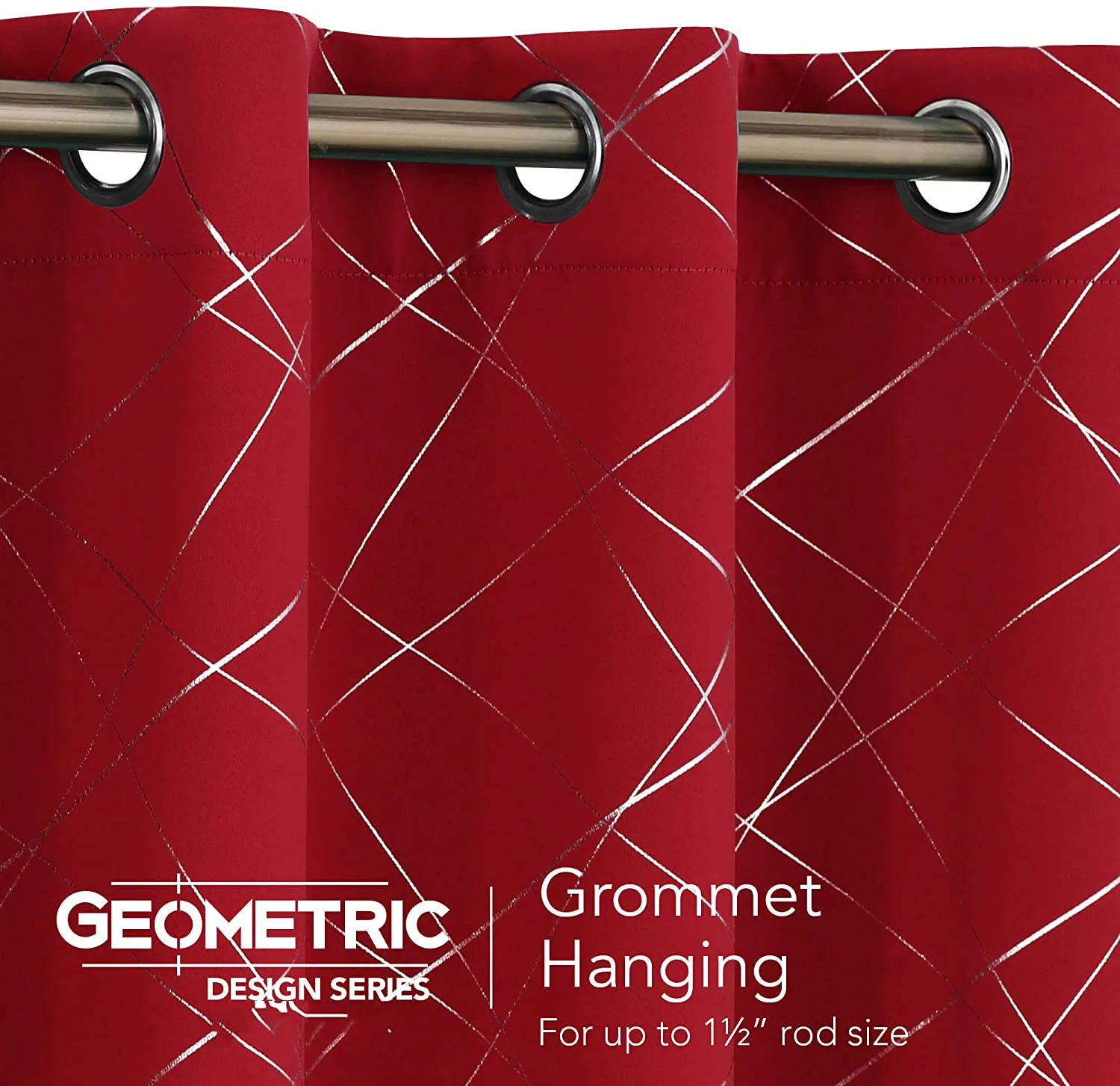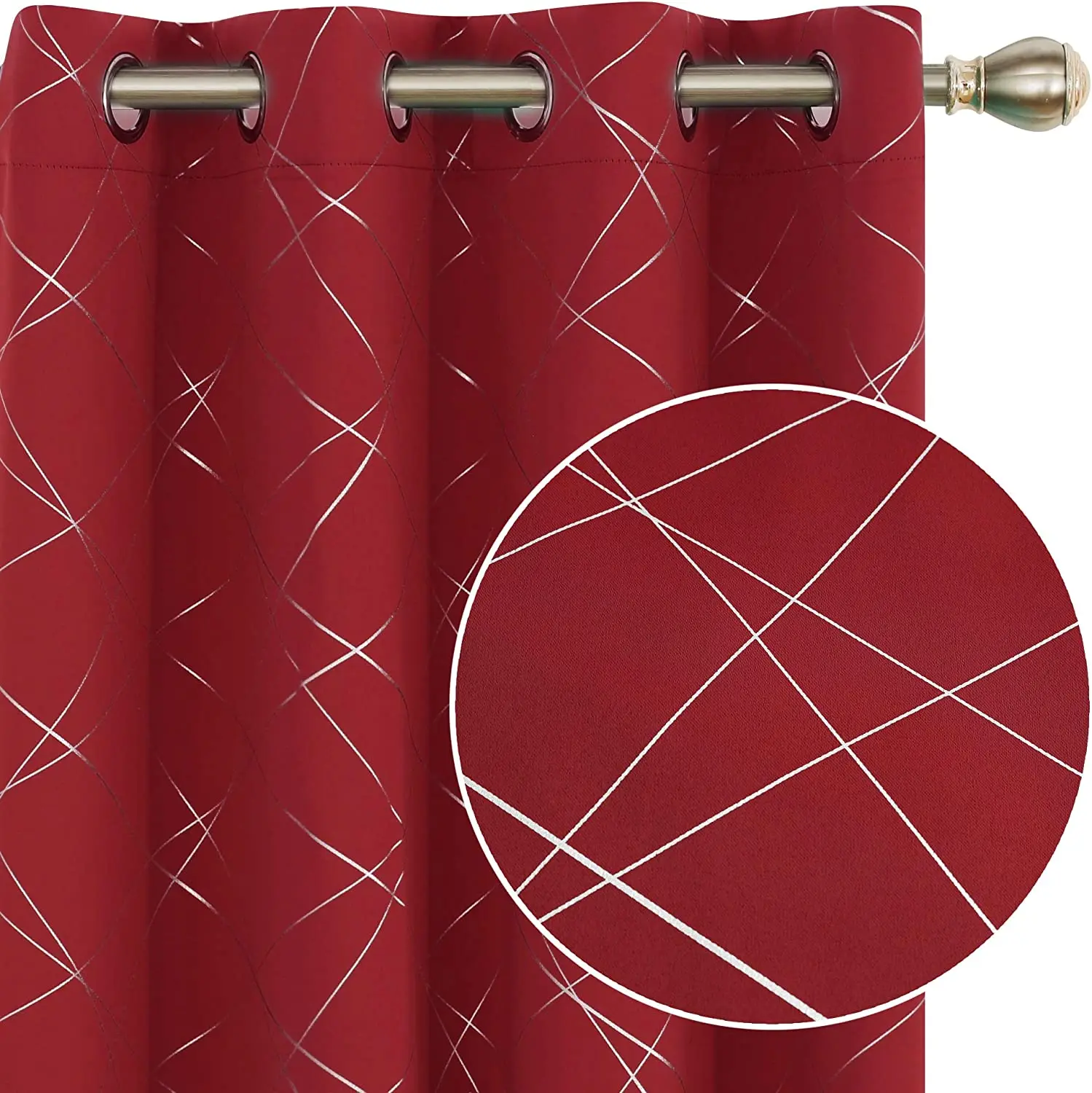 Blackout Curtains with Geometric Line Foil Printed Pattern Room Darkening Thermal Insulated Window Curtains Drapes for Kitchen