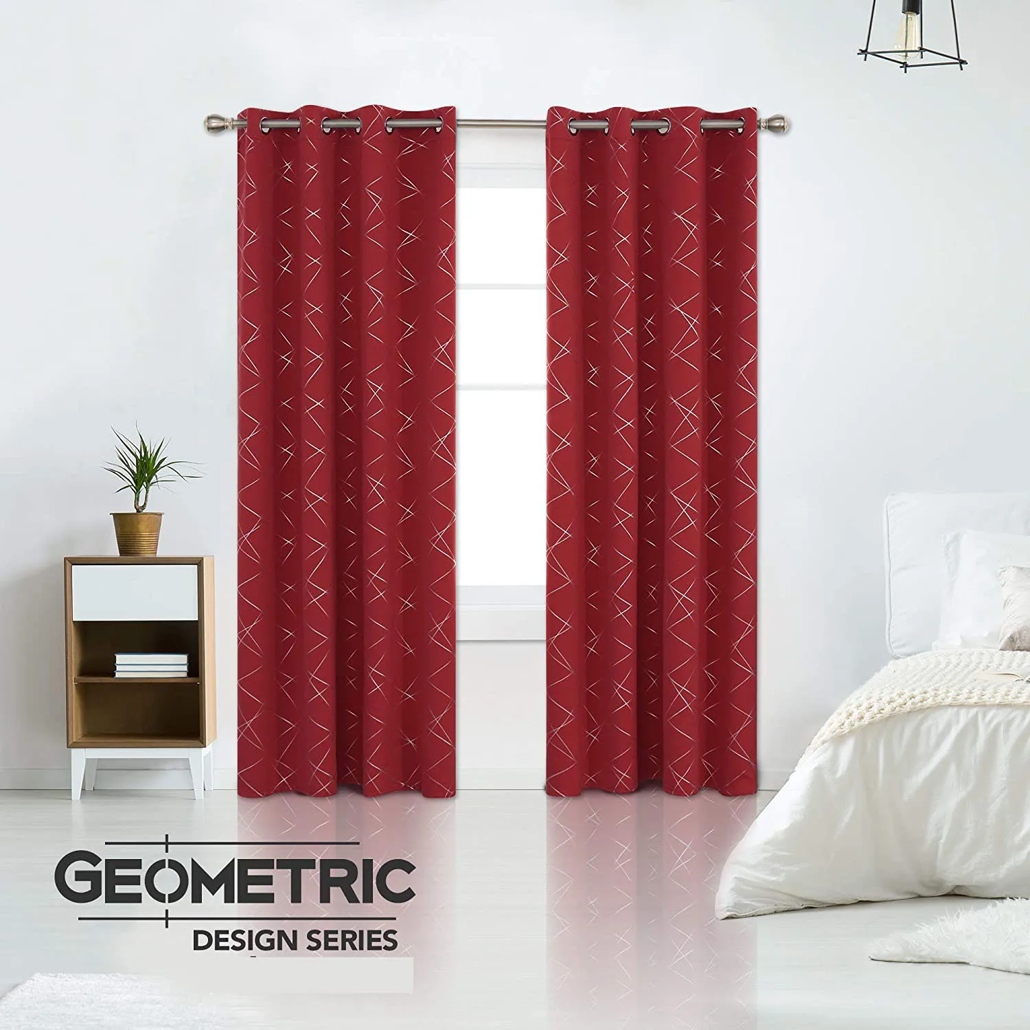 首页 门、窗、窗帘、标识标牌 窗帘及门帘 窗帘 Blackout Curtains with Geometric Line Foil Printed Pattern Room Darkening Thermal Insulated Window Curtains Drapes for Kitchen