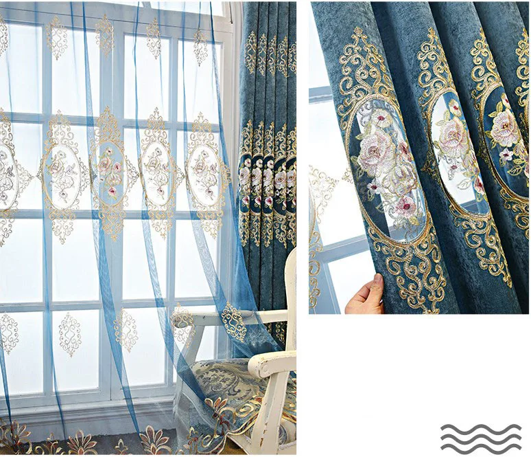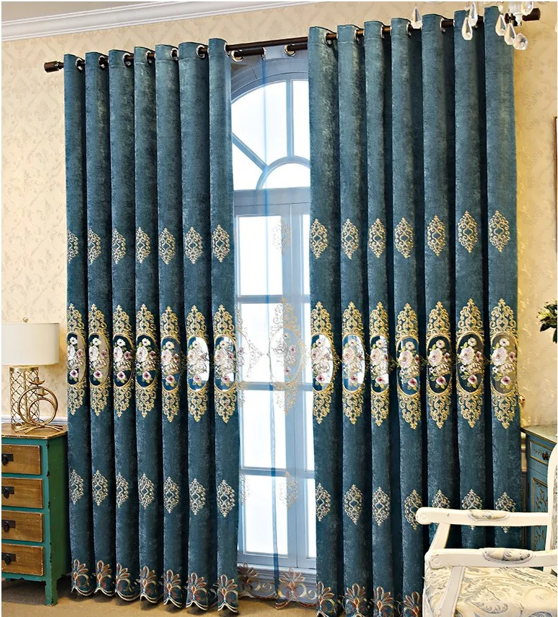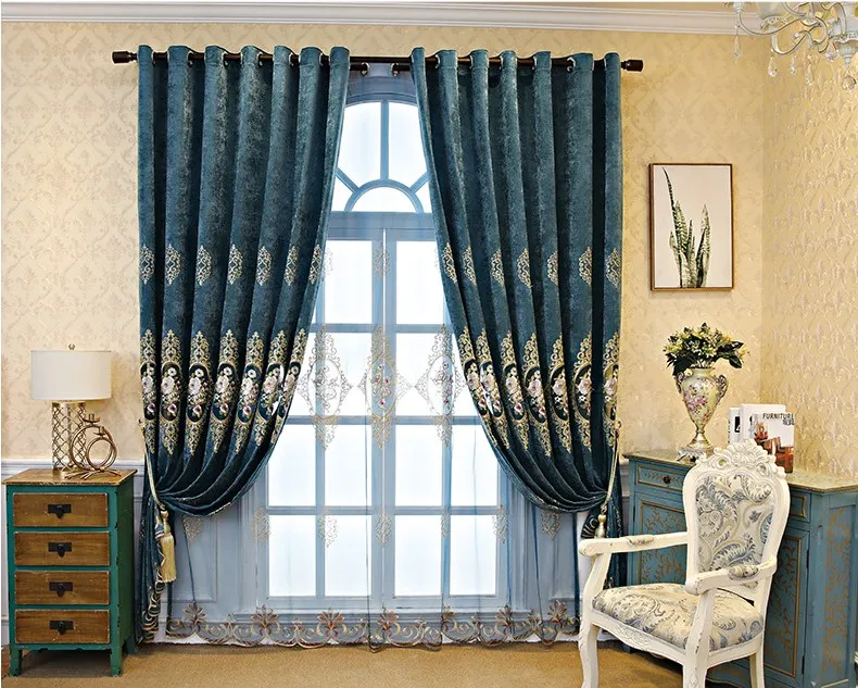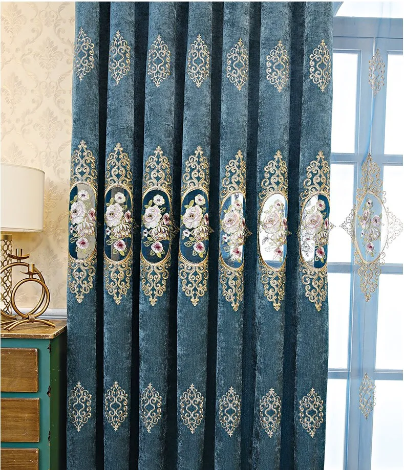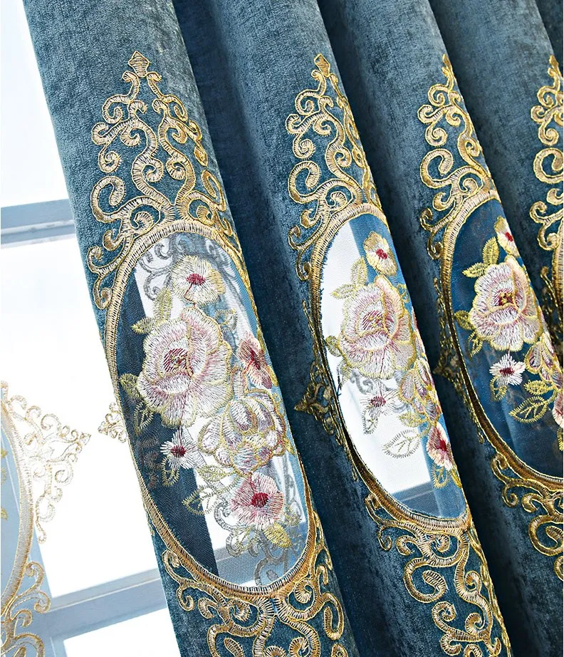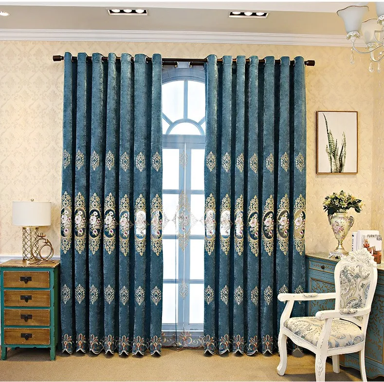 New arrival European style Chenille blackout curtains Embroidery blackout curtains for living room