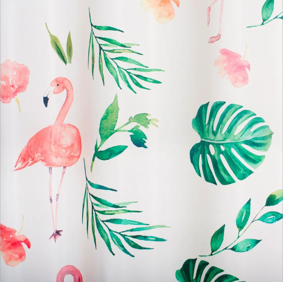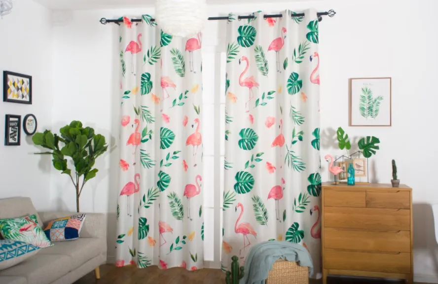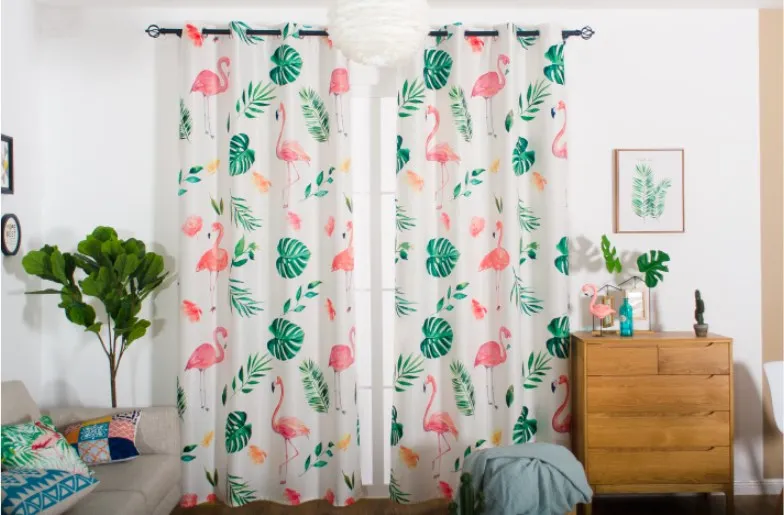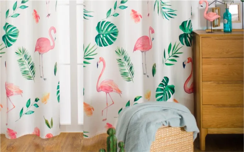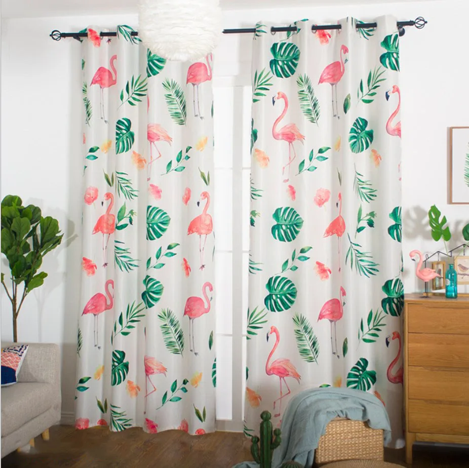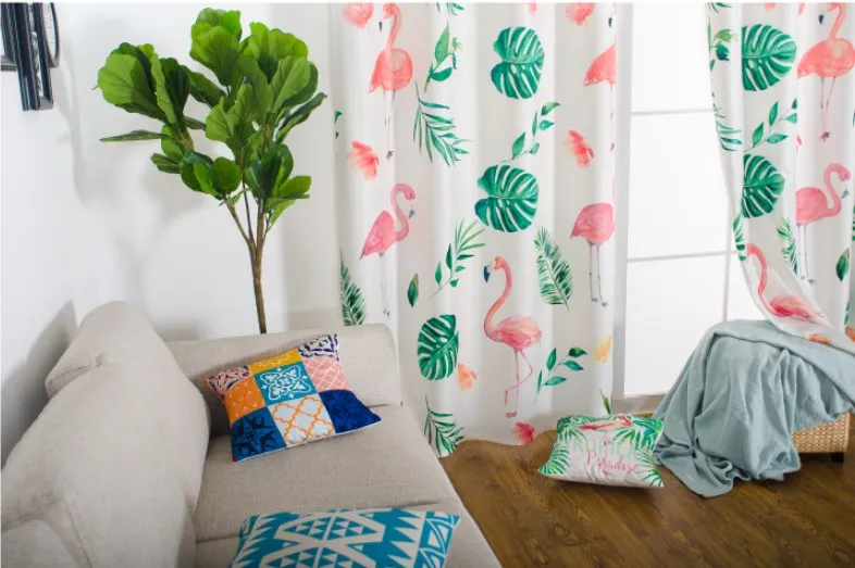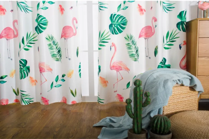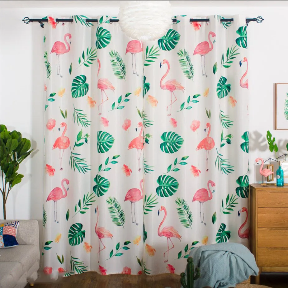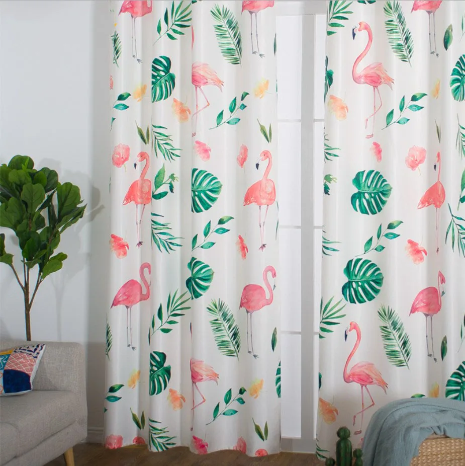 Ins hot selling blackout curtains turtle back green plant flamingo design printing blackout window curtains decoration room