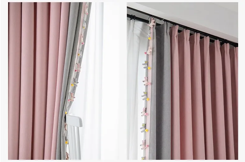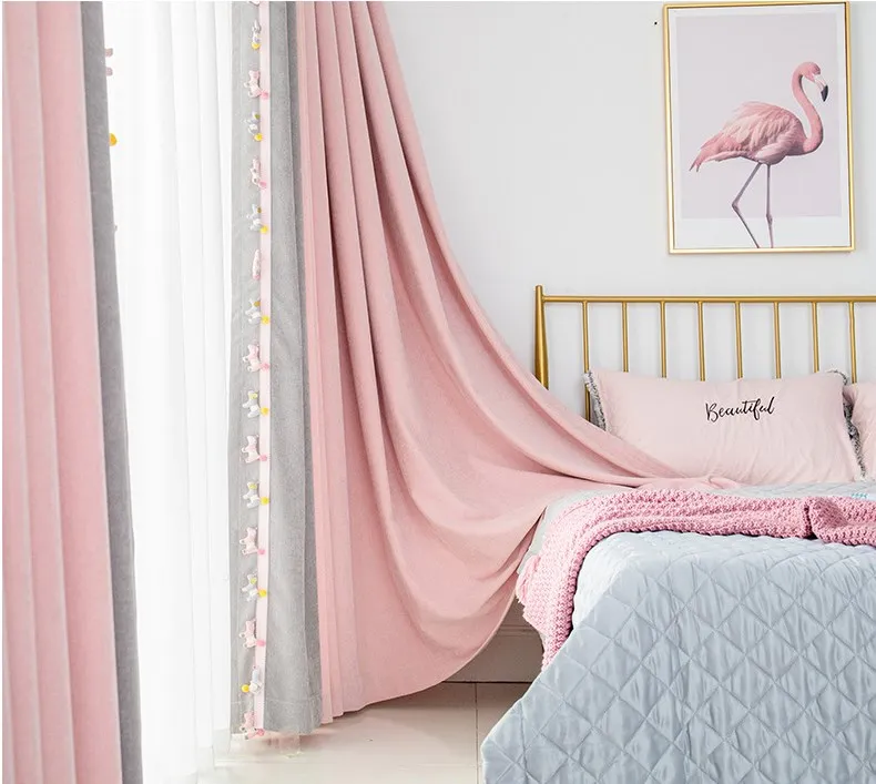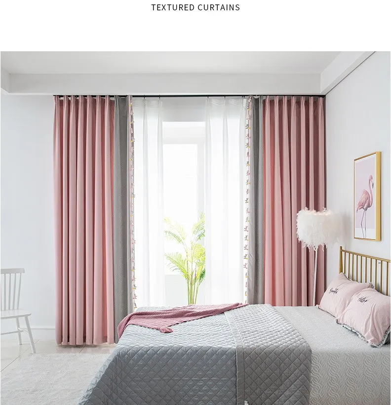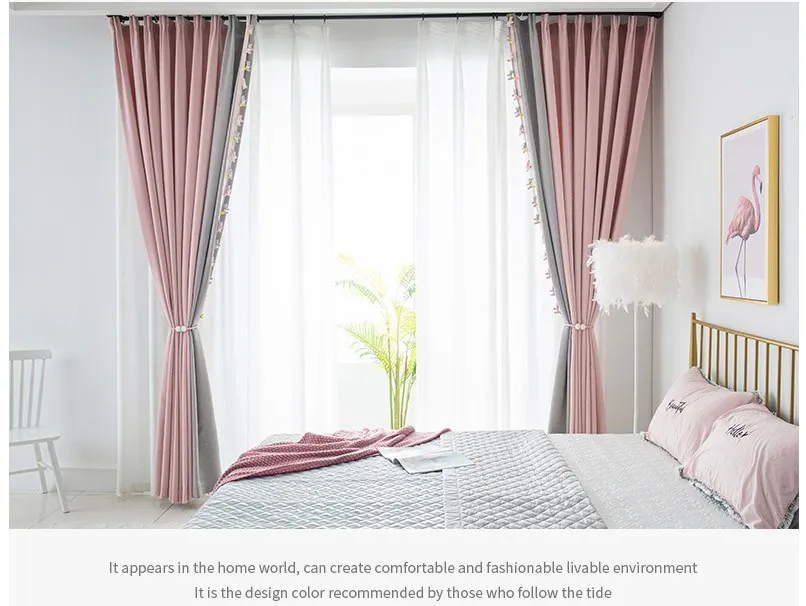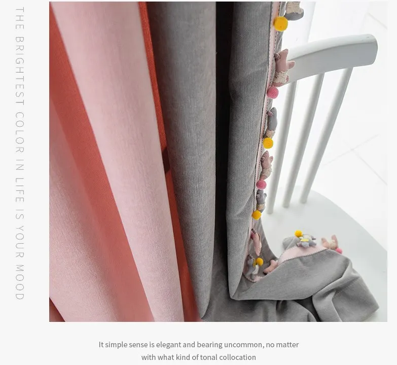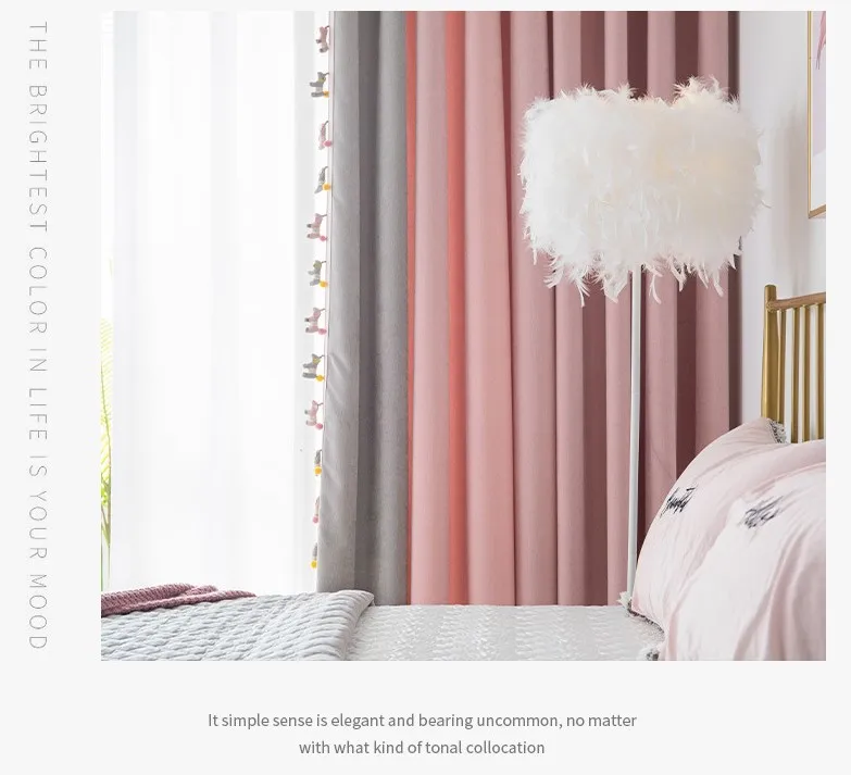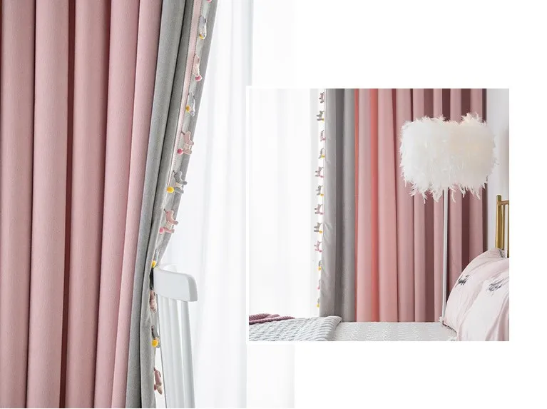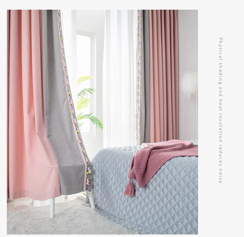 The new Morandi girl style finished curtain perforated bedroom bay window spliced chenille curtain