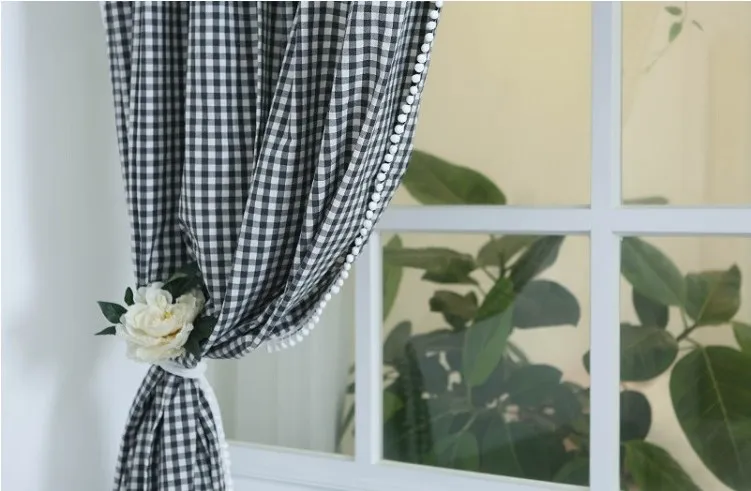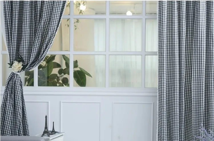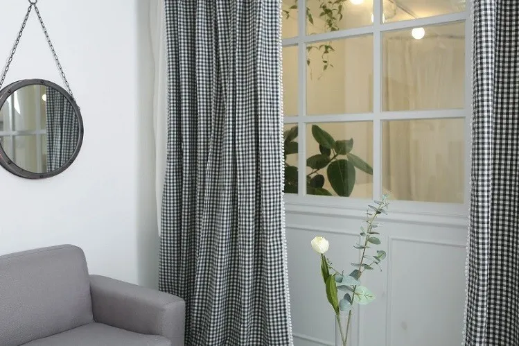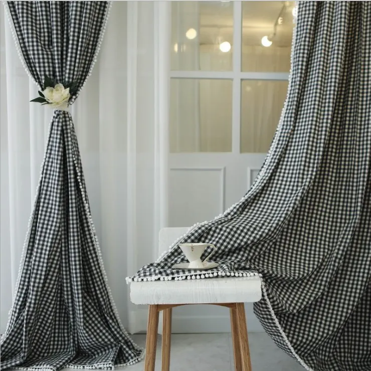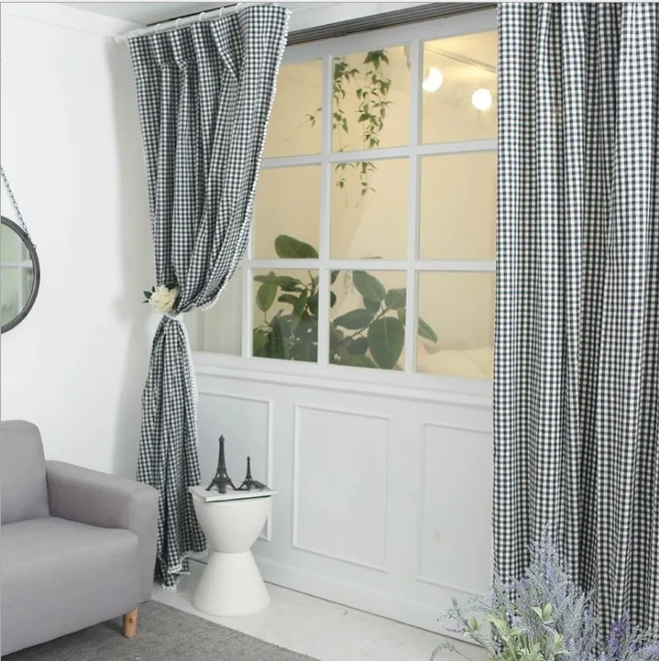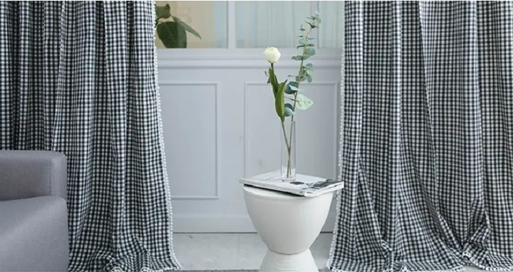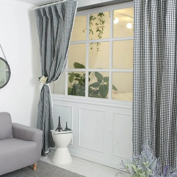 Classic hot selling Square check printed curtains oxford 100% polyester printing curtains for living room
