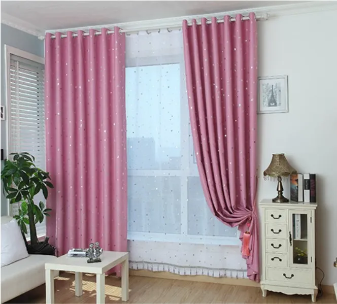 High quality blackout with Stars pattern foil printing woven blackout curtains for bedroom
