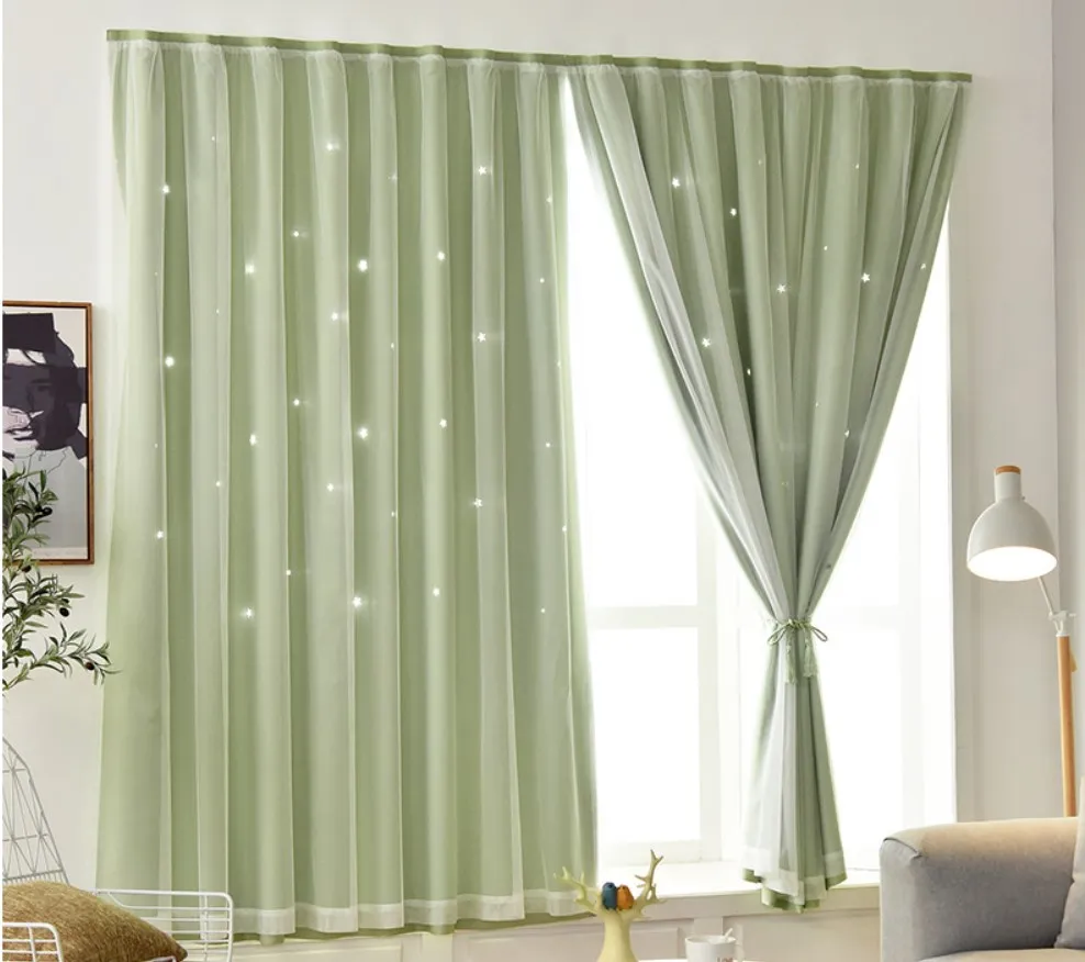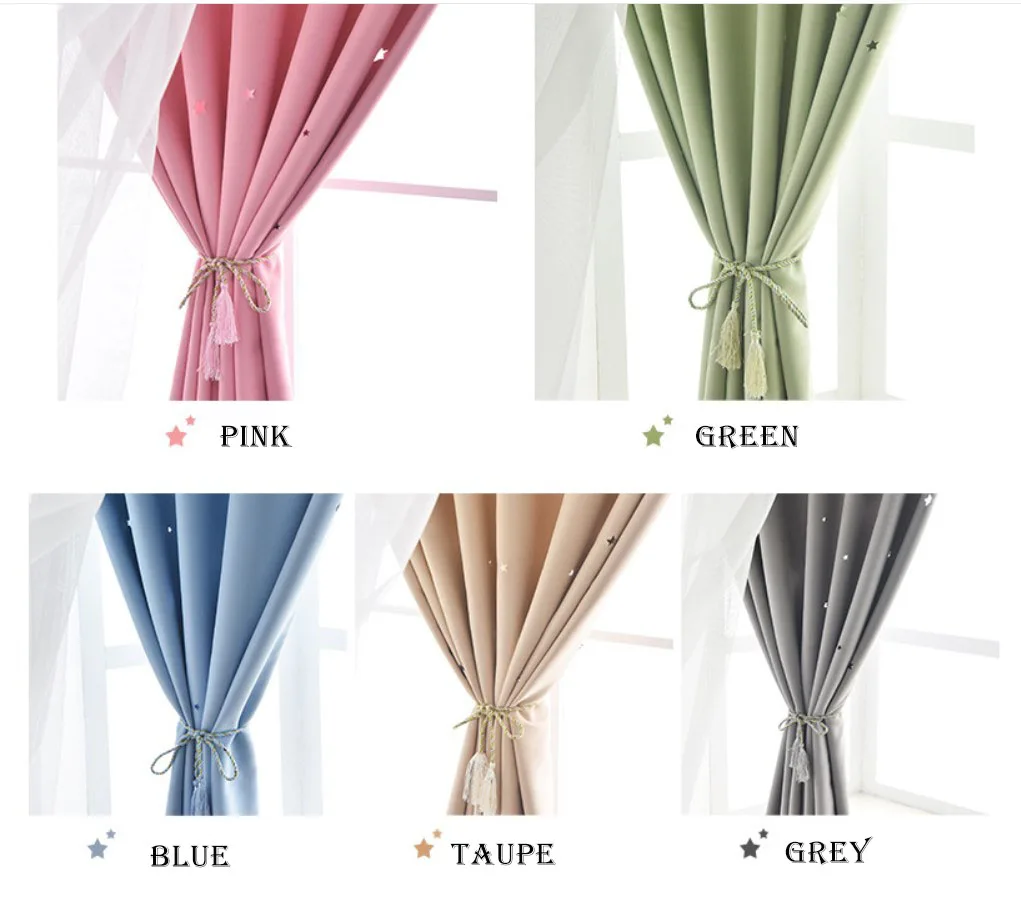 Ins hot selling stars pattern laser cutting blackout curtains Elegant Hole-free Velcros Hole-out blackout curtains