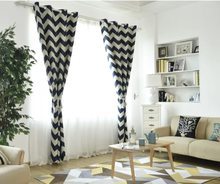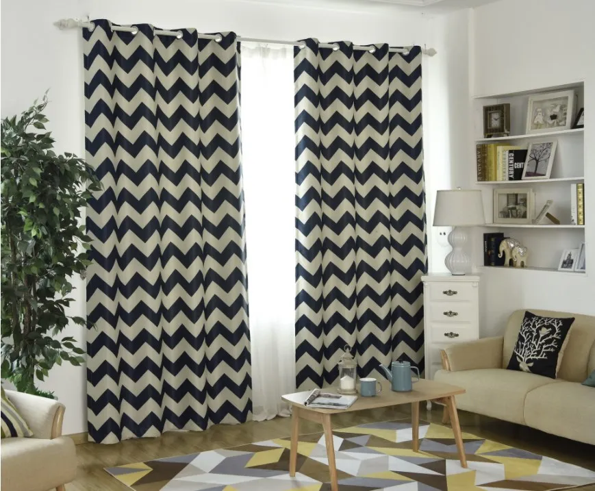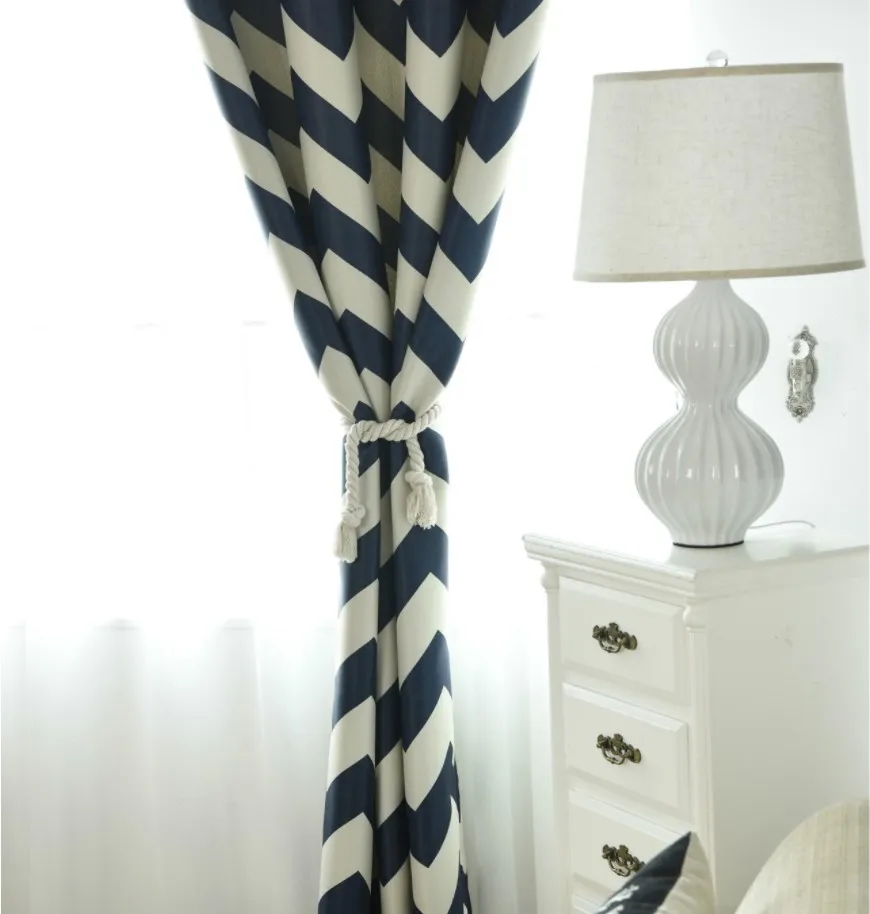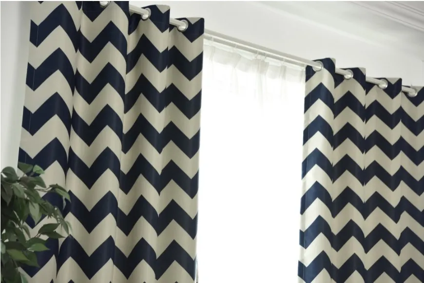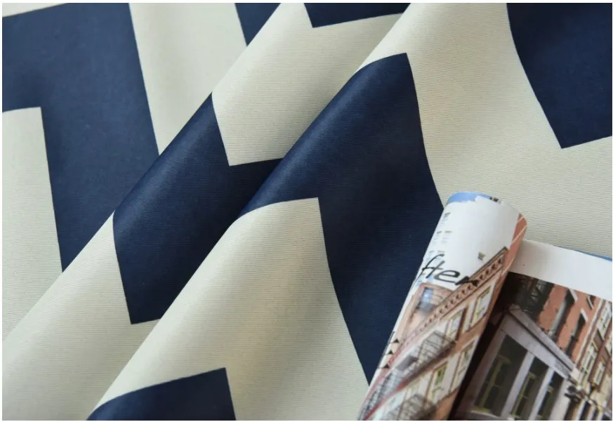 Luxury stripe printing design blackout curtains Navy blue hot selling printed blackout curtain for North American Market