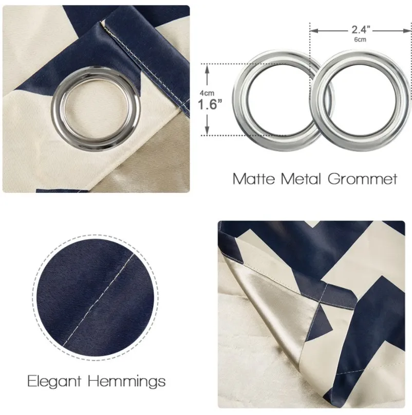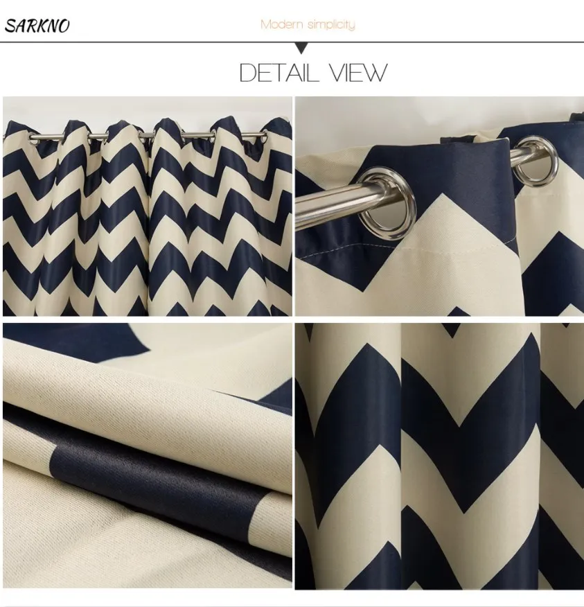首页 门、窗、窗帘、标识标牌 窗帘及门帘 窗帘 Luxury stripe printing design blackout curtains Navy blue hot selling printed blackout curtain for North American Market