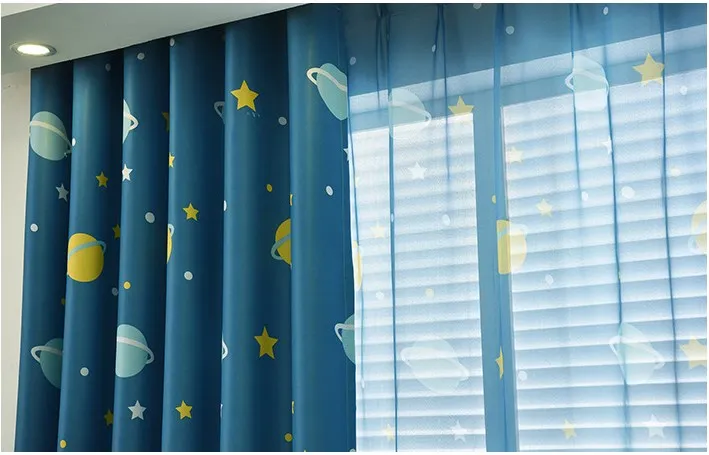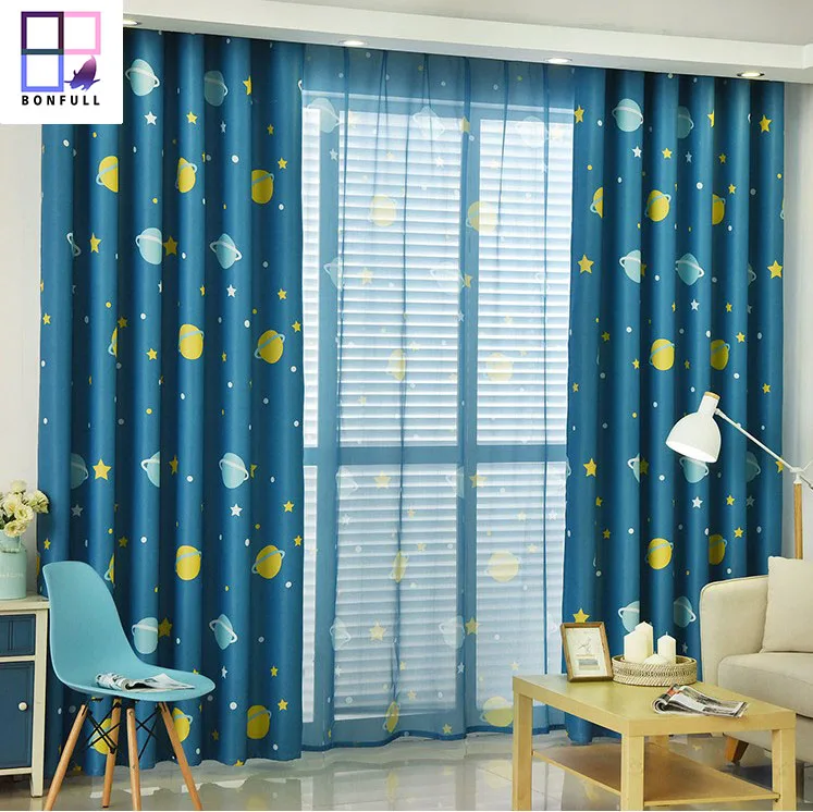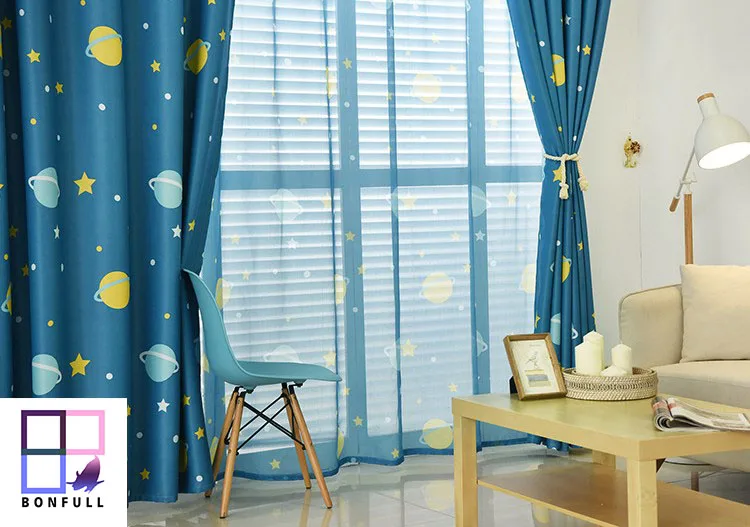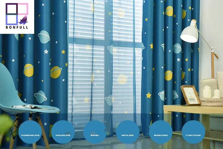 首页 门、窗、窗帘、标识标牌 窗帘及门帘 窗帘 Readymade curtains Manufacturing factory Blackout curtains with blue planet printing for living room