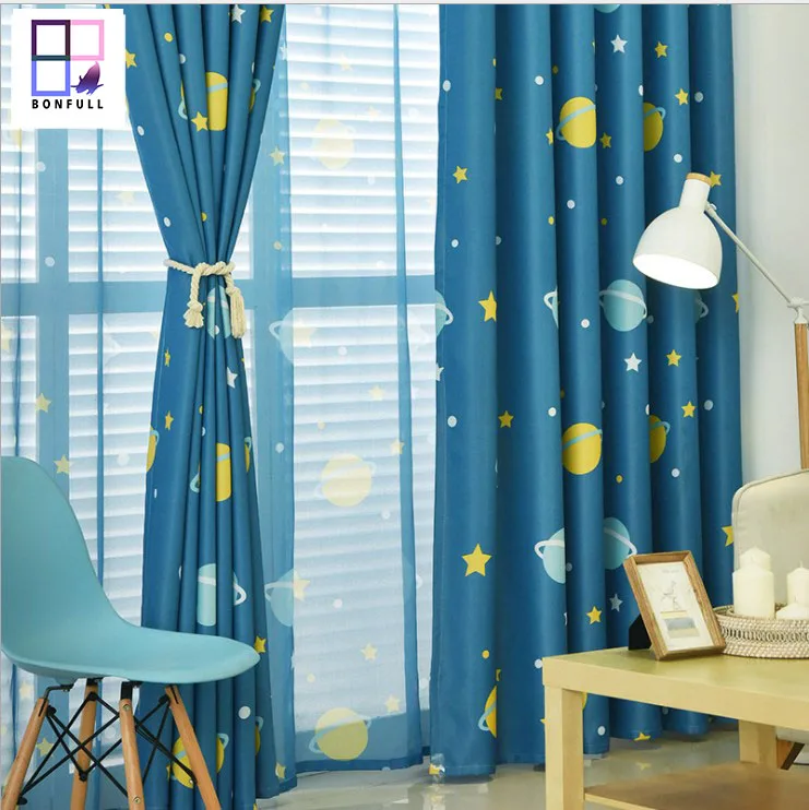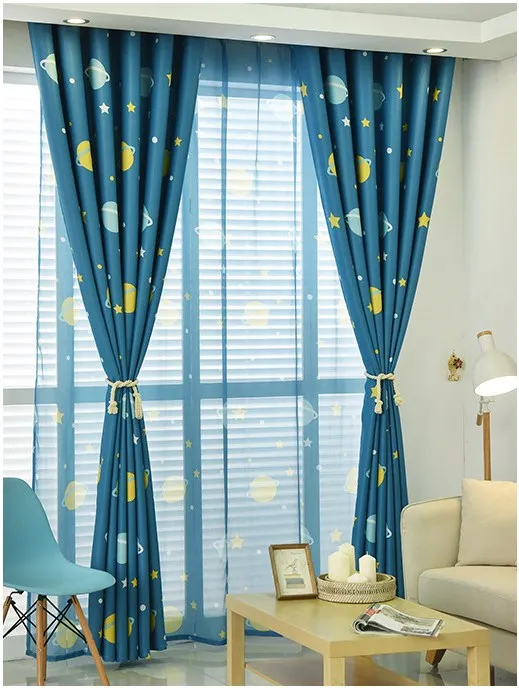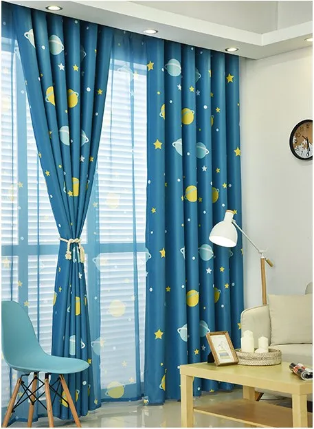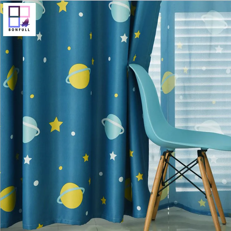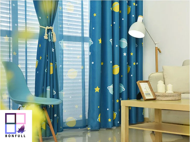 Readymade curtains Manufacturing factory Blackout curtains with blue planet printing for living room