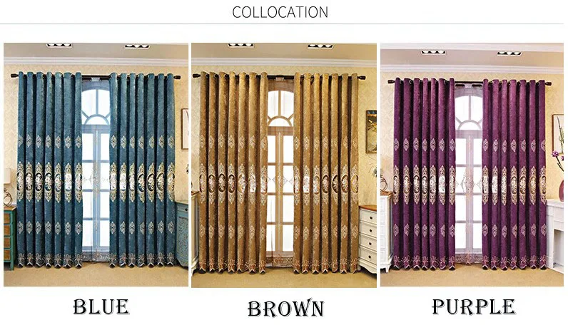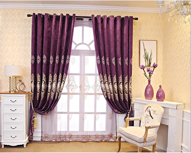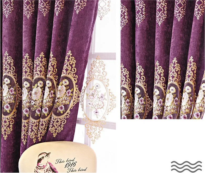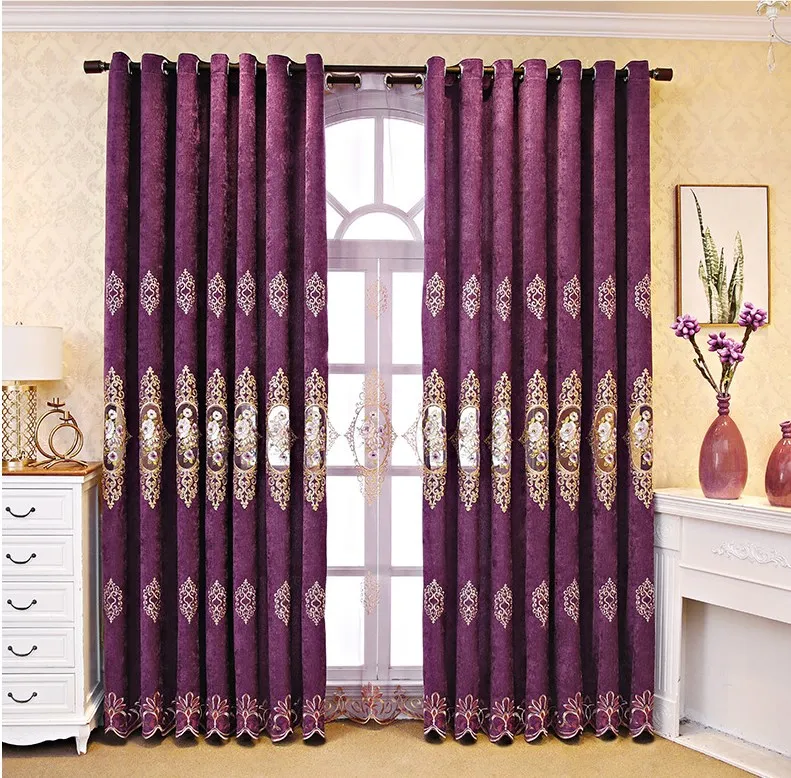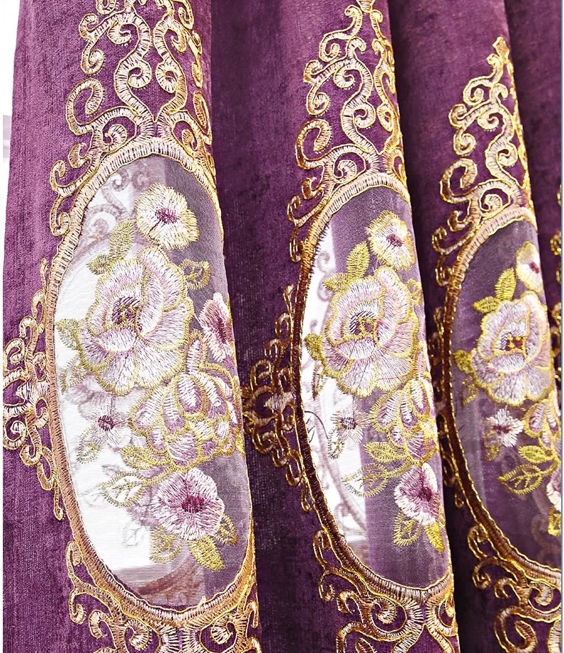 High quality Royal purple European style Embroidery curtains Wholesale Chenille Blackout curtains for living room