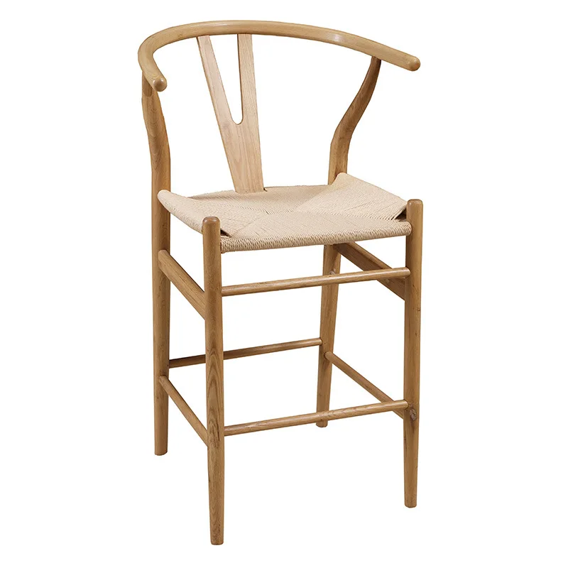 首页 户外生活、家用光伏发电 户外家具 吧台椅 Nordic Antique Comfortable Wholesale Price Coffee House Pub Tea Restaurant Handmade Solid Beech Wood Rattan Bar Chairs