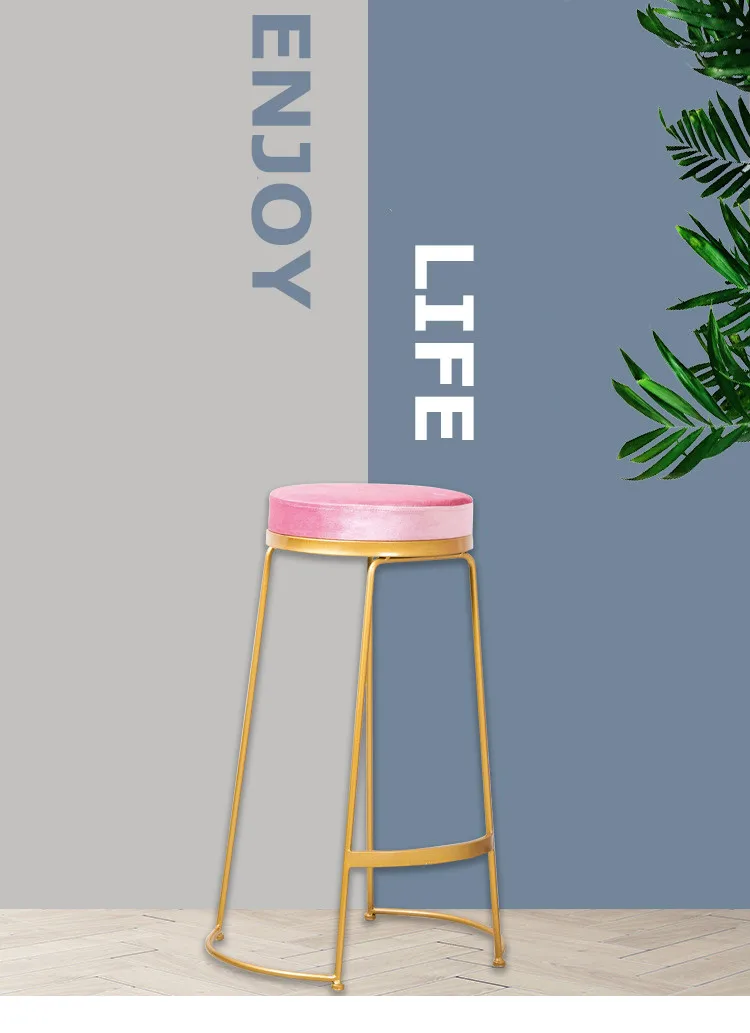首页 户外生活、家用光伏发电 户外家具 吧台椅 16.Simple design velvet cushion luxury firm structure creative fresh dining colorful high iron foot coffee Nordic bar stool