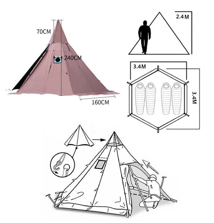 Custom Shelter Pyramid A Tower Smoke Window Tent Park Party Field Survival Double Recreation Army Tent