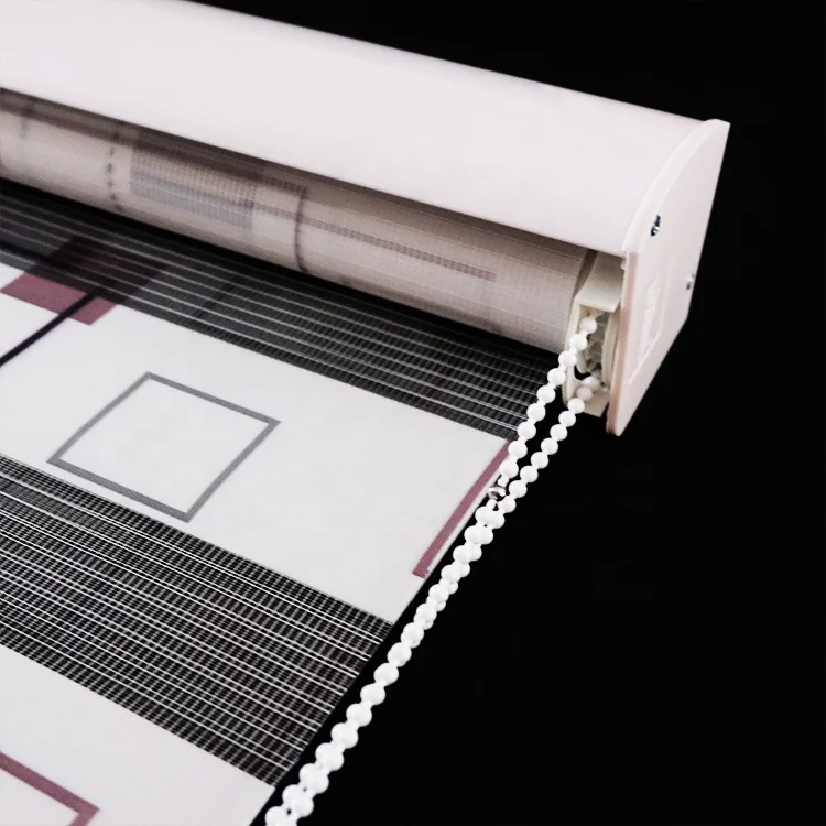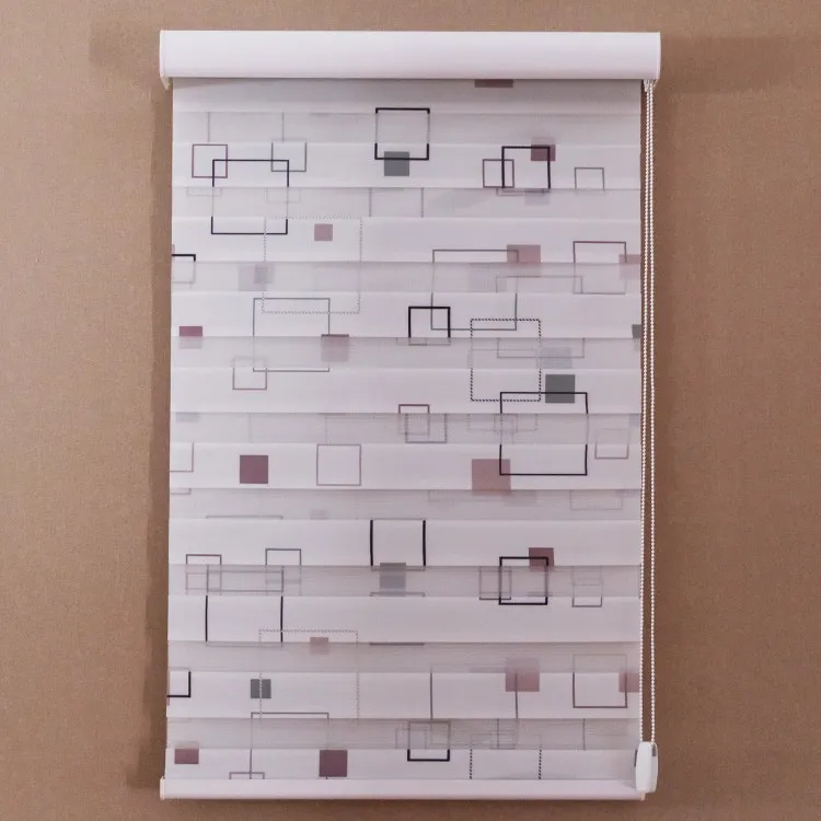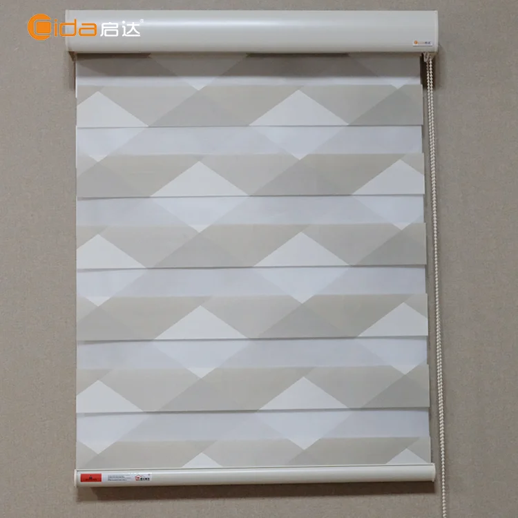 首页 门、窗、窗帘、标识标牌 窗帘及门帘 卷帘 成都启达窗饰制品有限公司 QIDA New design geometrical blackout curtain double fabric zebra blind for home decoration