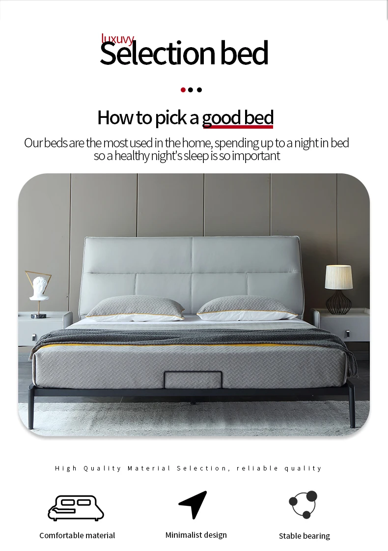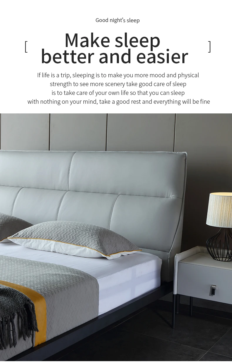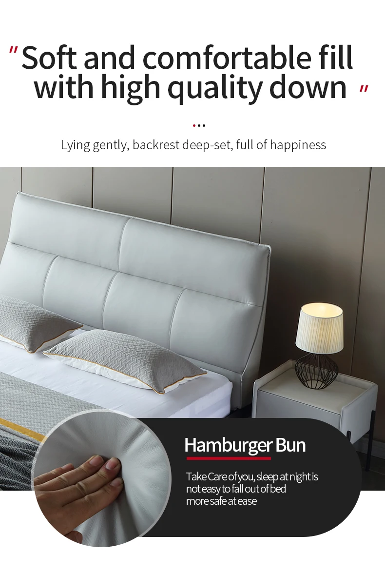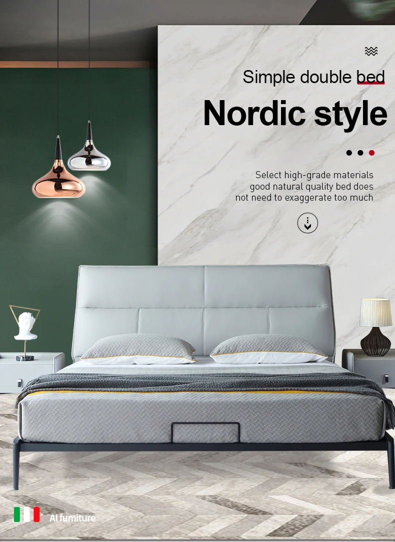 首页 住房活动家具、家用电器 卧室家具 床 佛山市迎商家具有限公司 Leather bed luxury Nordic ins modern minimalist Italian minimalist bedroom double 1.8 m soft bed