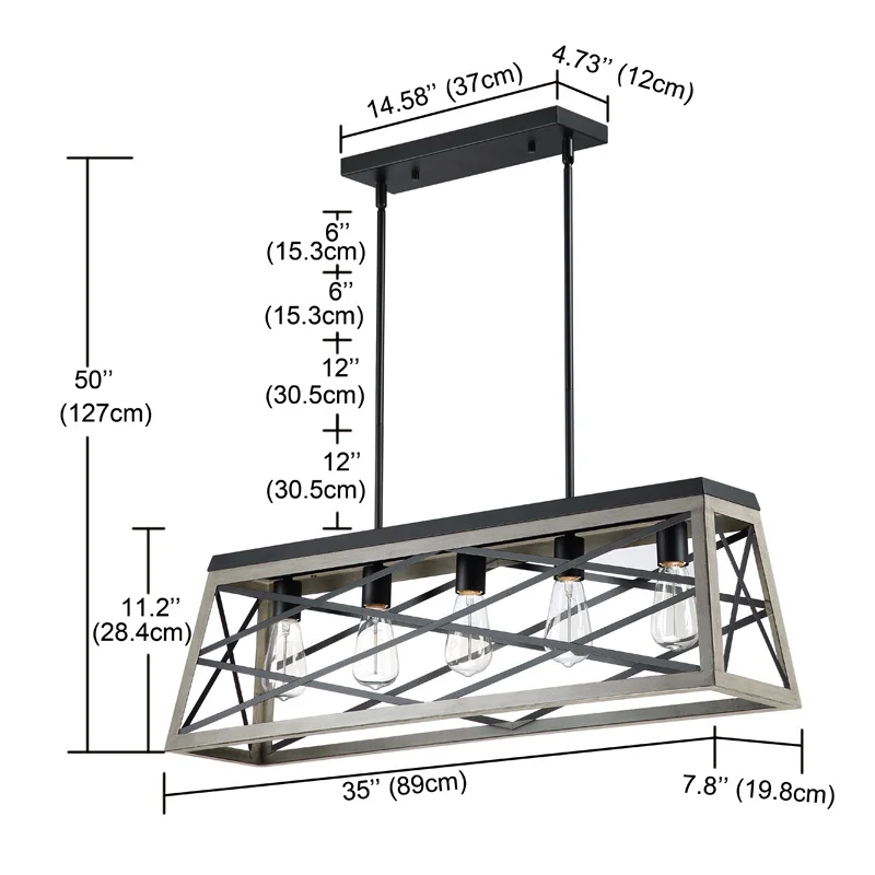 Luxury rectangular frame pendants New design 5-light indoor living room chandeliers pendant lights