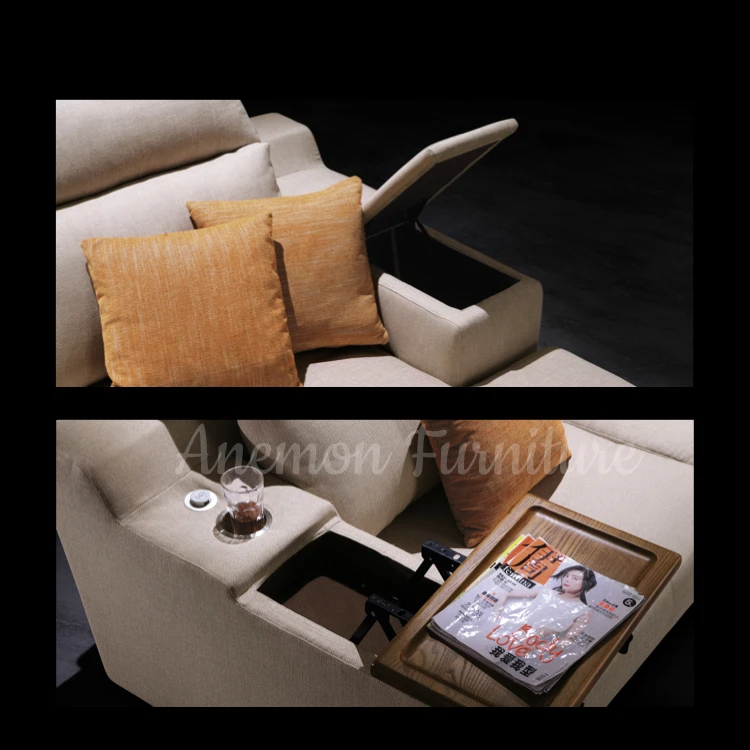 [Anemon Furniture] China Light Salmon Multifunctional Sofa Set with Cell Phone Charger and Storage MSA05