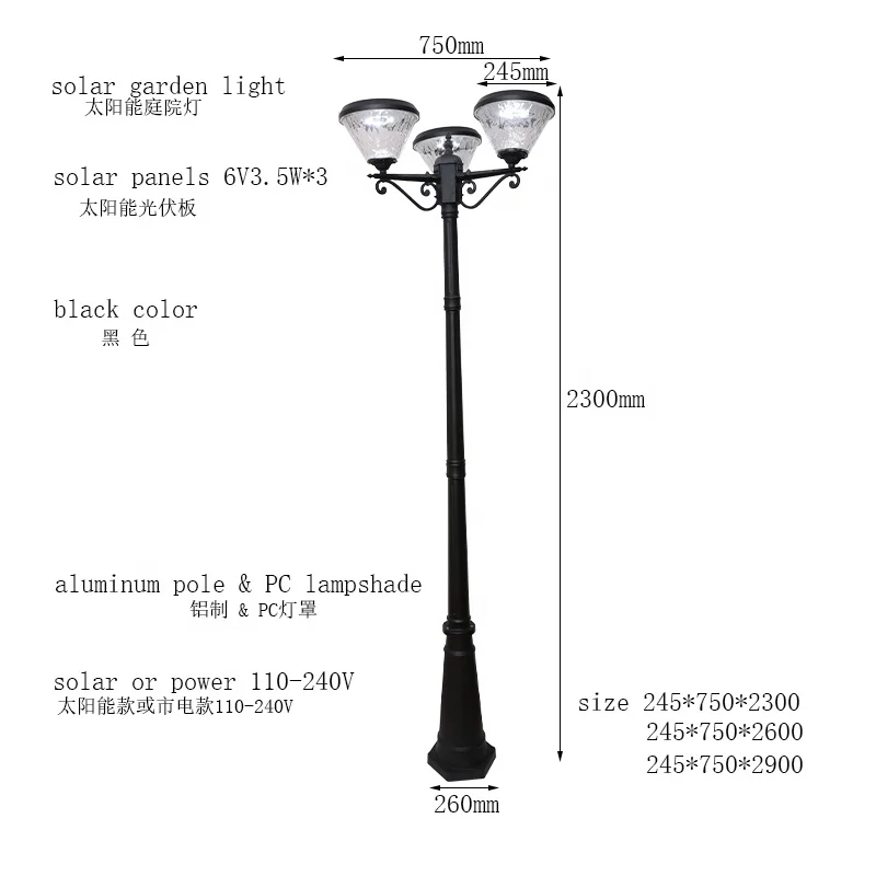 Industrial Design Outdoor Decoration new Classical solar Led Garden Light Pole