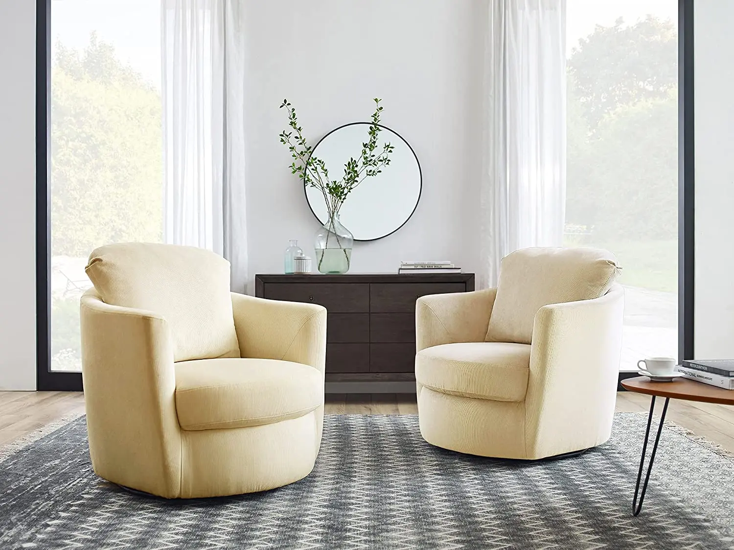 【Simple yet Beautiful】:The contemporary fabric swivel chair is the perfect blend of luxury and trendiness, it will give your room an instant upgrade in style and comfort.